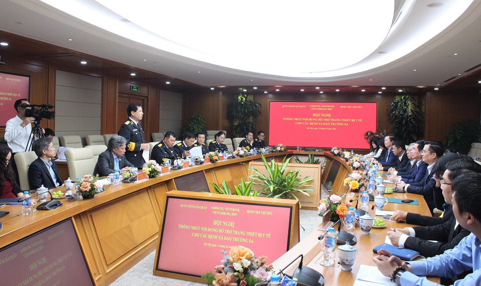 Chiều 15/3, tại Hà Nội, Quân chủng Hải quân phối hợp với Bệnh viện Việt Đức, Ngân hàng Nông nghiệp và Phát triển nông thôn (Agribank), Ngân hàng Đầu tư và Phát triển (BIDV), Ngân hàng Công thương (Vietinbank), Ngân hàng Ngoại thương (Vietcombank) tổ chức Hội nghị thống nhất nội dung về hỗ trợ trang thiết bị y tế cho các bệnh xá thuộc huyện đảo Trường Sa, tỉnh Khánh Hòa. Chuẩn Đô đốc Hoàng Hồng Hà, Phó Tư lệnh Hải quân chủ trì.