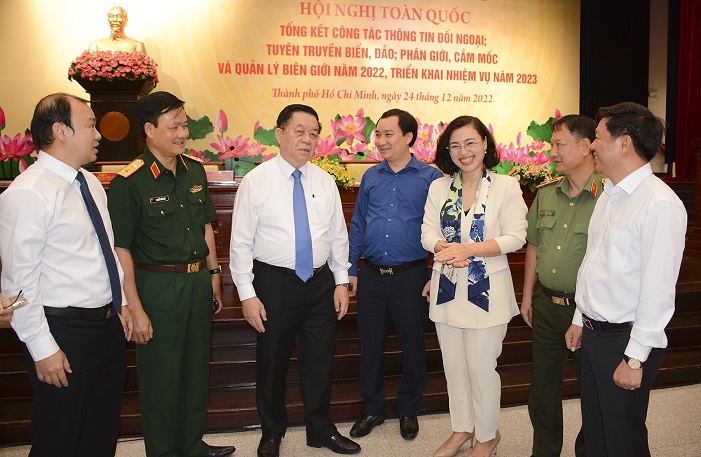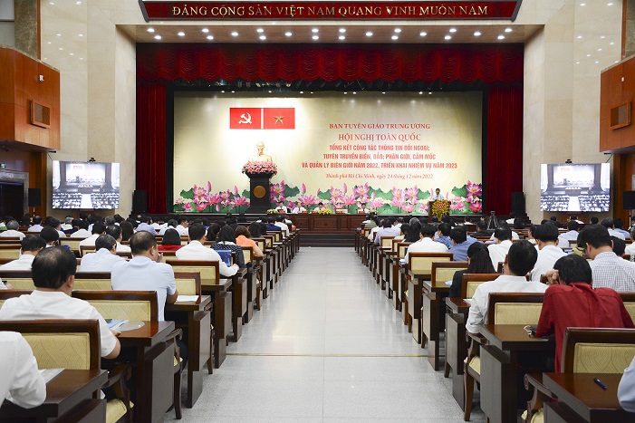 Chiều 24/12, tại TP. Hồ Chí Minh, Ban Tuyên giáo Trung ương tổ chức Hội nghị toàn quốc tổng kết công tác thông tin đối ngoại; tuyên truyền biển, đảo; phân giới, cắm mốc và quản lý biên giới năm 2022; triển khai nhiệm vụ năm 2023.
