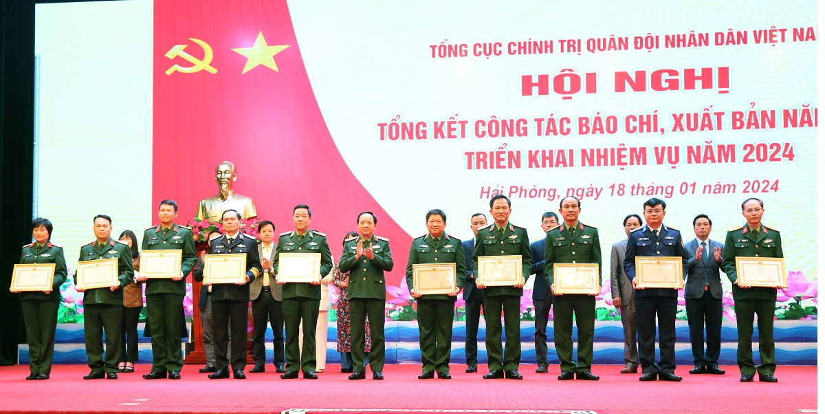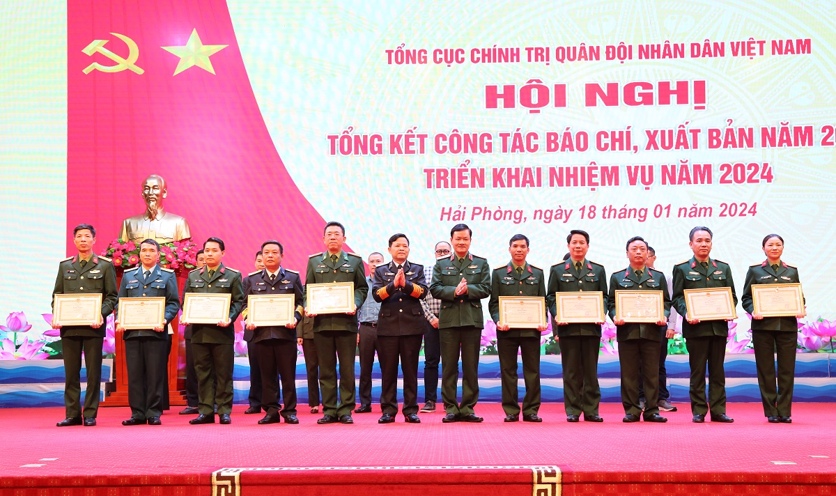 Cũng tại hội nghị, Ban tổ chức đã công bố các quyết định khen thưởng và trao Bằng khen của Bộ trưởng Bộ Quốc phòng, Chủ nhiệm Tổng cục Chính trị QĐND Việt Nam tặng các tập thể, cá nhân đạt thành tích xuất sắc trong công tác tuyên truyền báo chí về nhiệm vụ quân sự, quốc phòng và đối ngoại quốc phòng năm 2023.