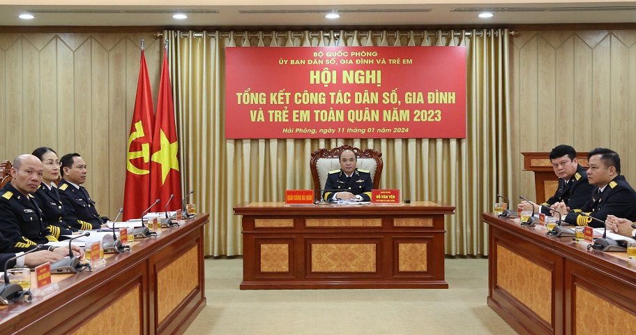 Sáng 11/1, tại Hà Nội, Ủy ban Dân số, Gia đình và Trẻ em (DSGĐ&TE) Bộ Quốc phòng tổ chức Hội nghị tổng kết công tác DSGĐ&TE toàn quân năm 2023. Thượng tướng Lê Huy Vịnh, Ủy viên Trung ương Đảng, Thứ trưởng Bộ Quốc phòng, Chủ tịch Ủy ban DSGĐ&TE Bộ Quốc phòng chủ trì. Hội nghị được tổ chức trực tiếp và trực tuyến tại 124 điểm cầu trong toàn quân.