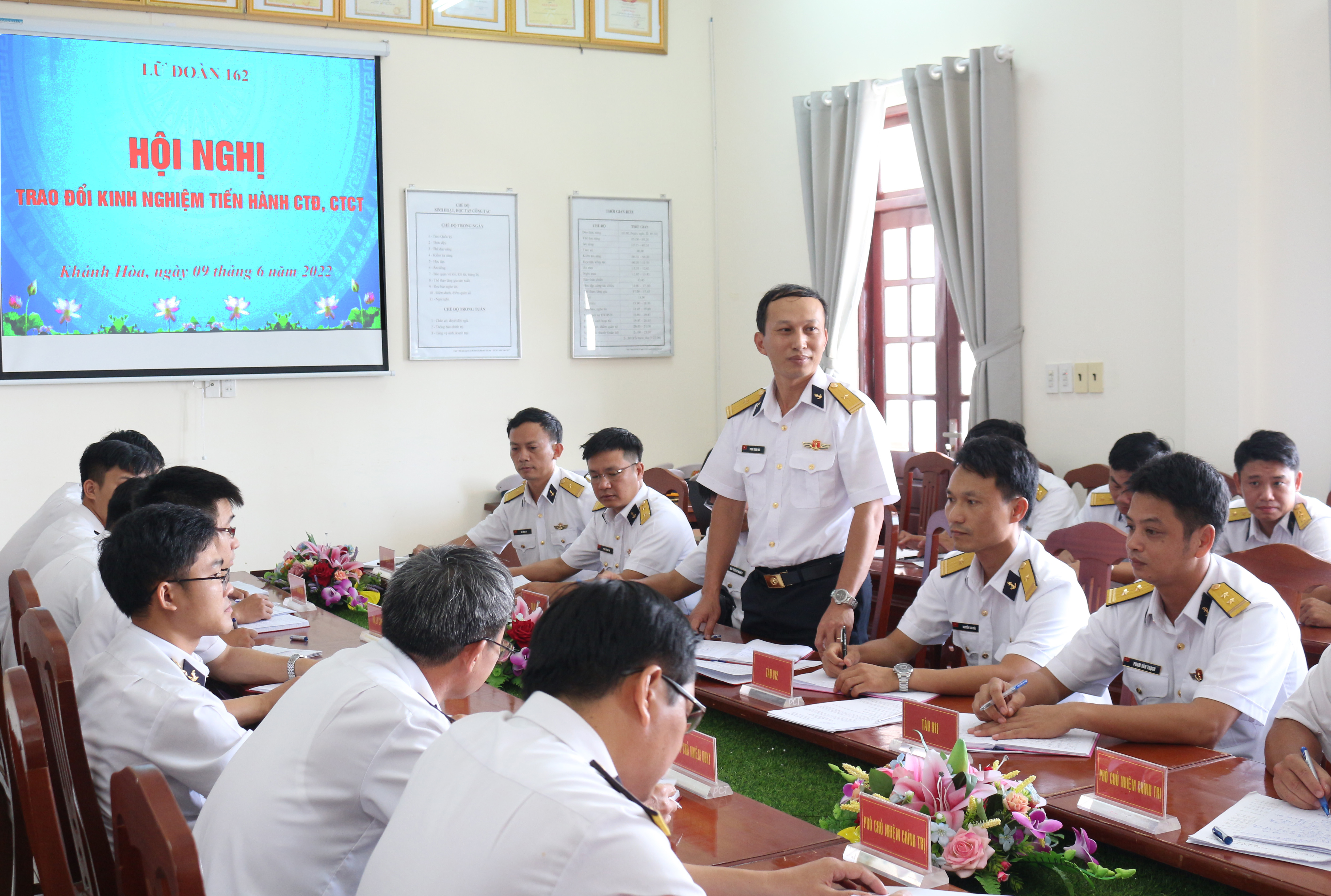 Chiều 9/6, tại TP. Cam Ranh, tỉnh Khánh Hoà, Lữ đoàn 162, Vùng 4 Hải quân tổ chức Hội nghị trao đổi kinh nghiệm tiến hành CTĐ, CTCT. Chuẩn Đô đốc Đoàn Văn Chiều, Chủ nhiệm Chính trị Hải quân dự và chỉ đạo.