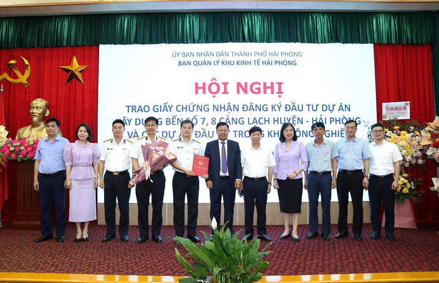 Chiều 9/5, tại TP. Hải Phòng, Ban Quản lý khu kinh tế phành phố Hải Phòng tổ chức Hội nghị trao Giấy chứng nhận đăng ký đầu tư cho dự án đầu tư xây dựng bến số 7, số 8 khu bến cảng Lạch Huyện thuộc cảng biển Hải Phòng cho Tổng công ty Tân cảng Sài Gòn. Đại tá Nguyễn Năng Toàn, Chủ tịch Tổng công ty dự tiếp nhận.