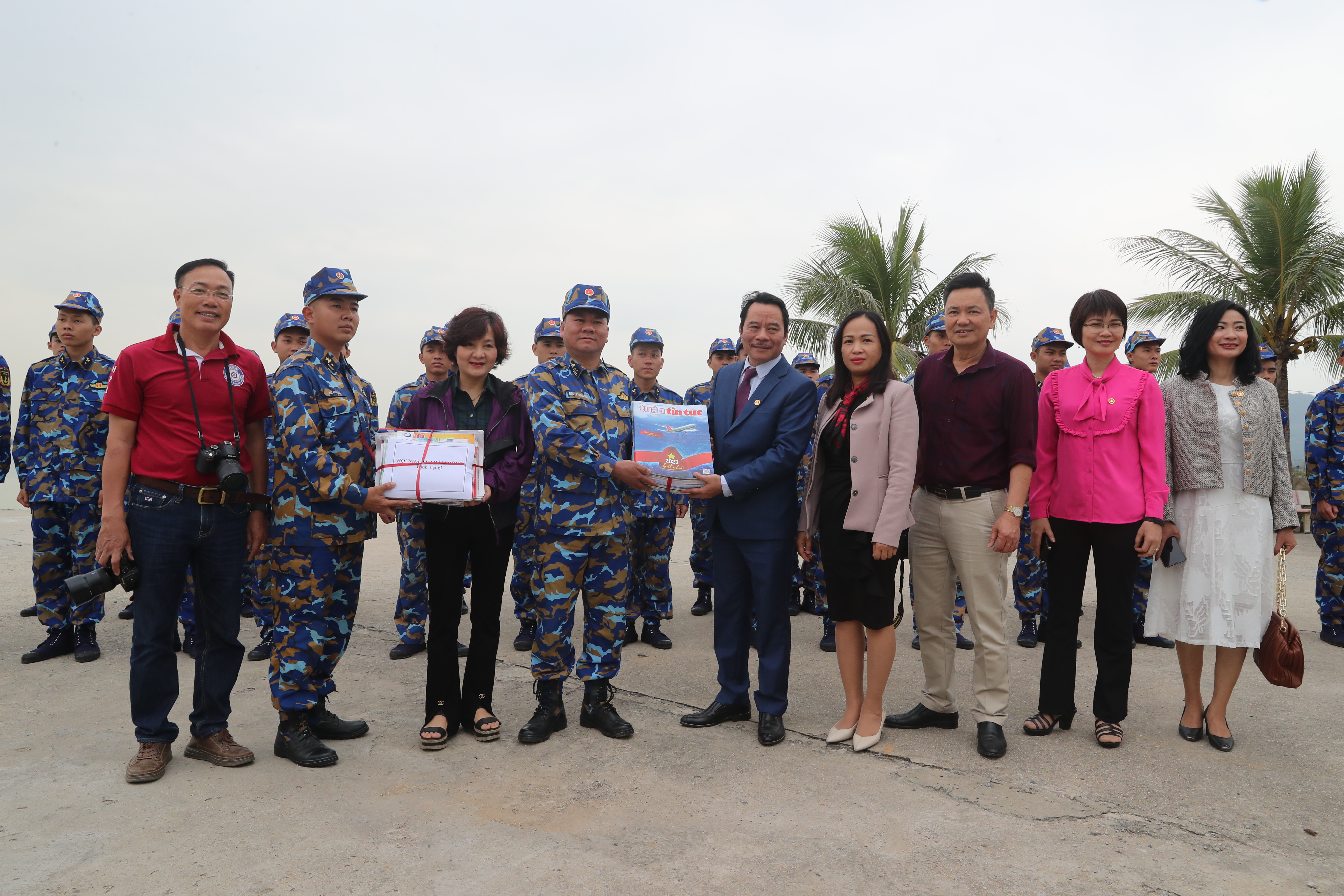 Đại diện lãnh đạo Hội Nhà báo TP. Hải Phòng tặng các ấn phẩm báo Xuân Quý Mão cho Tiểu đoàn 471, Lữ đoàn 147