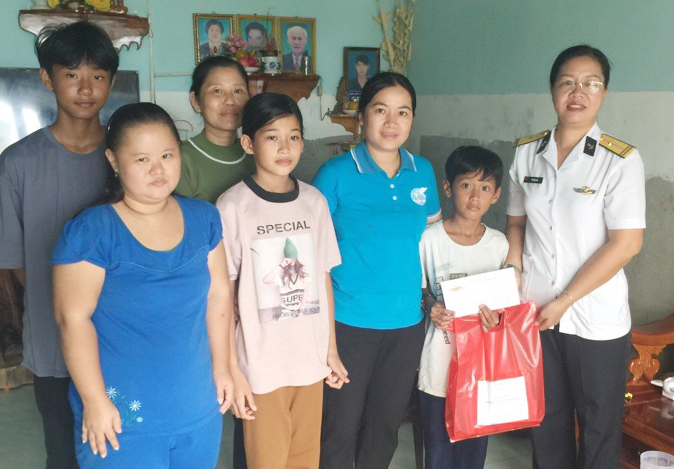 Hội cũng nhận hỗ trợ chăm sóc, nuôi dưỡng một trẻ mồ côi có hoàn cảnh khó khăn là cháu Huỳnh Thạch Chung ở phường 12, TP. Vũng Tàu. Bố mẹ cháu Chung mất sớm, cháu sống cùng ông bà nội. Ông bà không có việc làm ổn định, ngày ngày đi mò cua bắt ốc để mưu sinh. Ông bà còn phải nuôi một người con bệnh tật và chị gái của Chung nên càng thêm gánh nặng... Bà Vũ Thị Lệ Thơm, bà nội cháu Chung xúc động: Từ khi Hội phụ nữ Hải đoàn 129 nhận hỗ trợ nuôi dưỡng cháu Chung, các chị em ở đơn vị nhiều lần đến thăm, động viên cháu và gia đình. Hàng tháng, các chị đều gửi tiền hỗ trợ đóng học phí cho cháu. Gia đình tôi rất cảm động và biết ơn sự quan tâm, giúp đỡ của các chị.