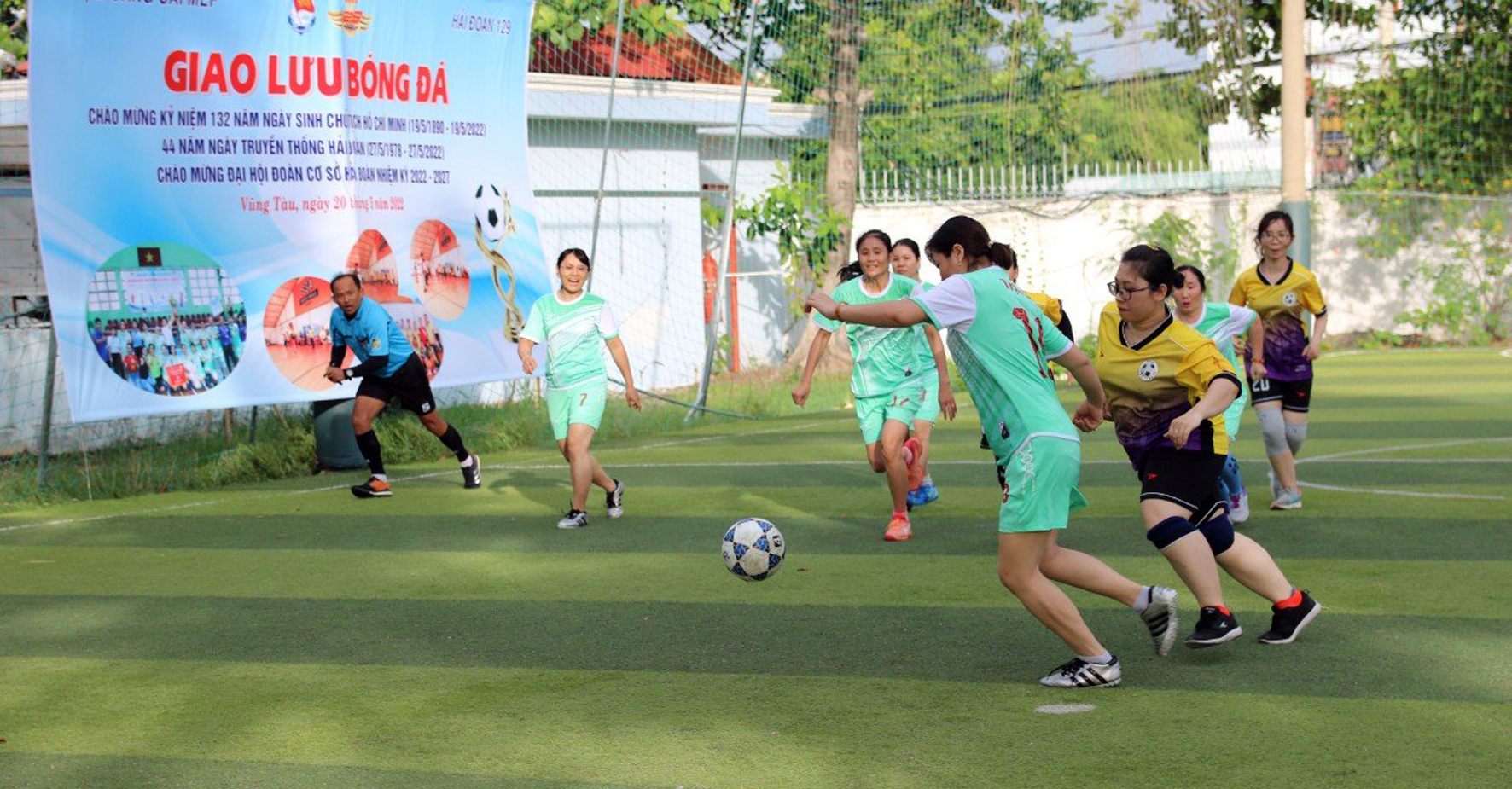 Cán bộ, hội viên Hội phụ nữ Hải đoàn giao hữu bóng đá Ảnh: CTV