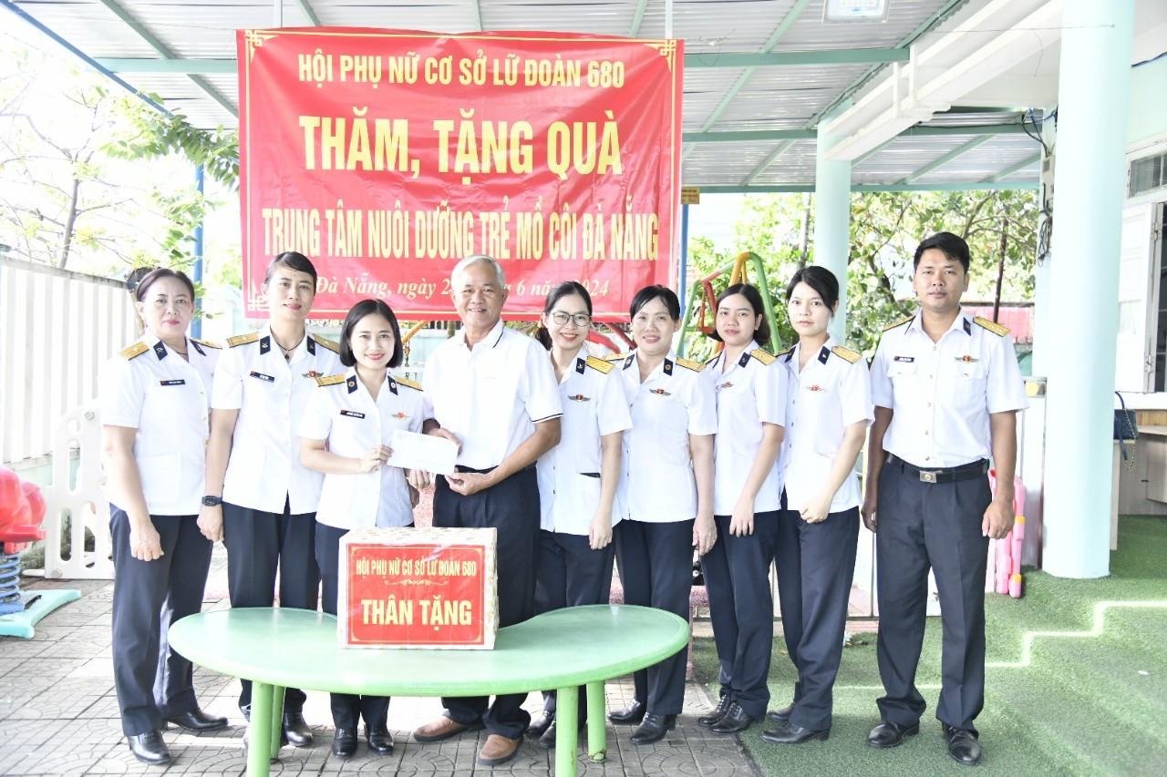 Sáng 22/6, Hội phụ nữ Lữ đoàn 680, Vùng 3 Hải quân đã đến thăm, tặng quà trẻ em mồ côi, khuyết tật tại Trung tâm nuôi dưỡng trẻ em mồ côi quận Ngũ Hành Sơn, thành phố Đà Nẵng.