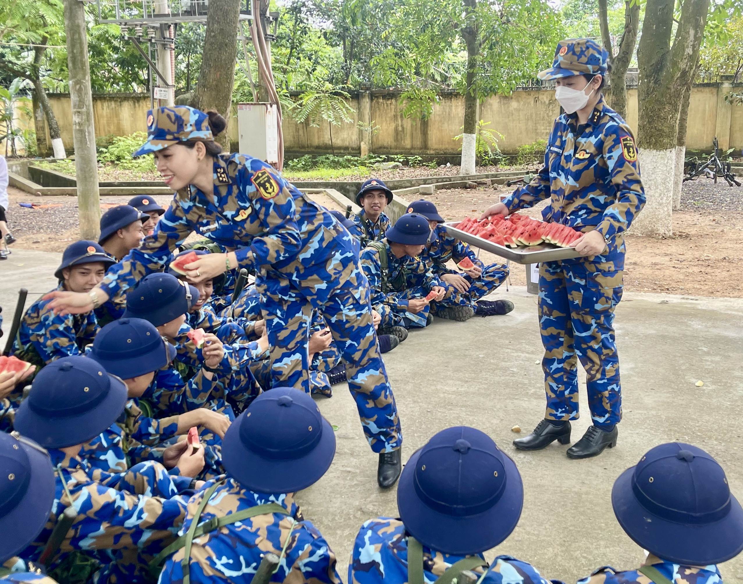 Giữa cái nắng chói chang của những ngày đầu hè, các chiến sĩ trẻ đang miệt mài tập trung cao độ các bài tập vào giai đoạn “nước rút”, chuẩn bị cho “3 tiếng nổ”. Khi tiếng còi giải lao vang lên cũng là lúc các hội viên phụ nữ Phòng Chính trị mang đến tận tay từng chiến sĩ những cốc nước mát lạnh, miếng trái cây tươi giải nhiệt và cùng trò chuyện vui vẻ.