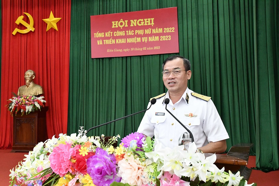 Chiều 10/2, tại TP. Phú Quốc, tỉnh Kiên Giang, Hội Phụ nữ Vùng 5 Hải quân tổ chức Hội nghị tổng kết công tác phụ nữ năm 2022 và triển khai nhiệm vụ năm 2023. Chuẩn Đô đốc Nguyễn Đăng Tiến, Bí thư Đảng ủy, Chính ủy Vùng dự và chỉ đạo.