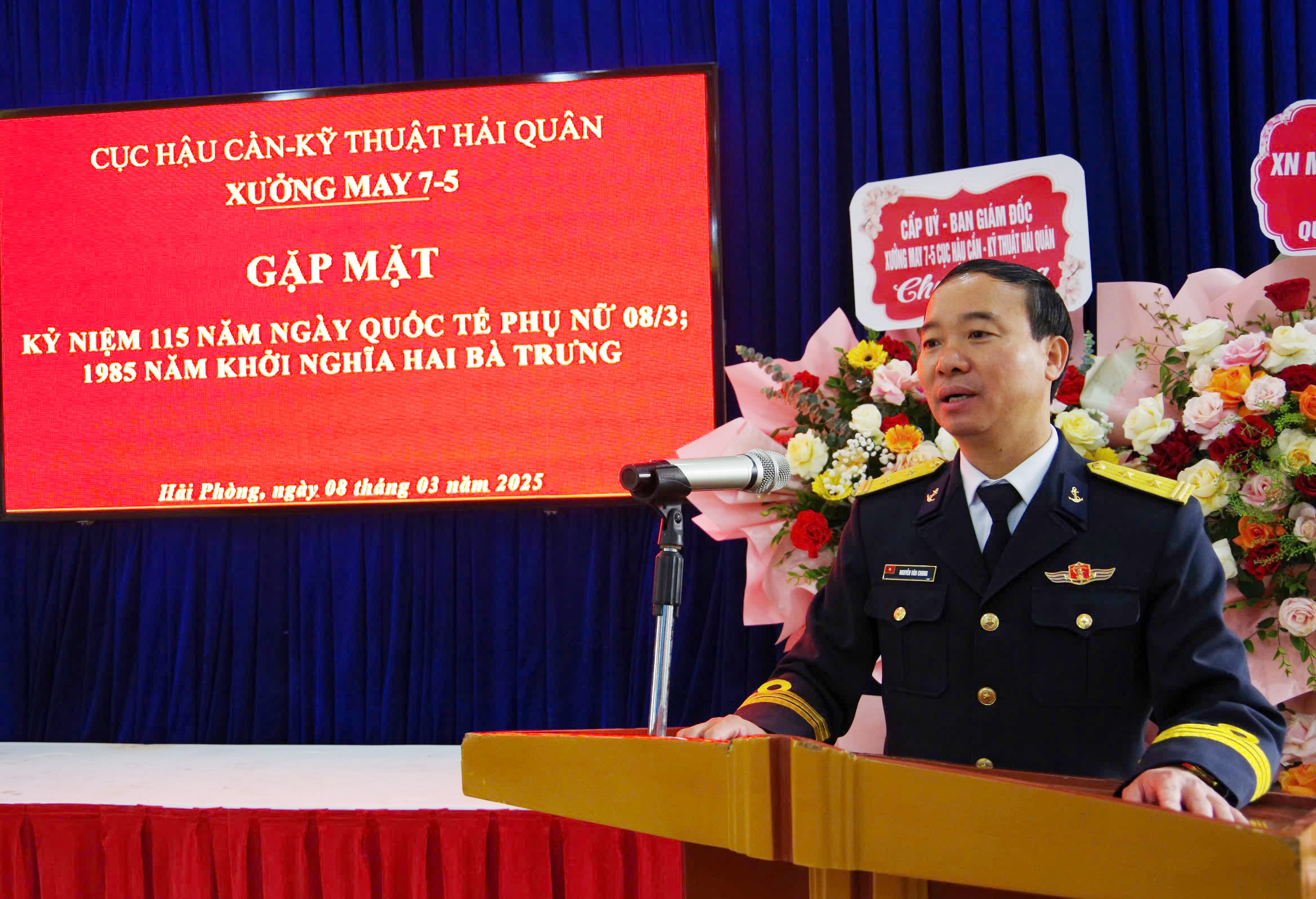 Sáng 8/3, tại Hải Phòng, Xưởng May 7-5, Cục Hậu cần - Kỹ Thuật Hải quân tổ chức gặp mặt nhân dịp kỷ niệm 115 năm Ngày quốc tế phụ nữ (8/3/1910 - 8/3/2025) và 1985 năm Khởi nghĩa Hai Bà Trưng.