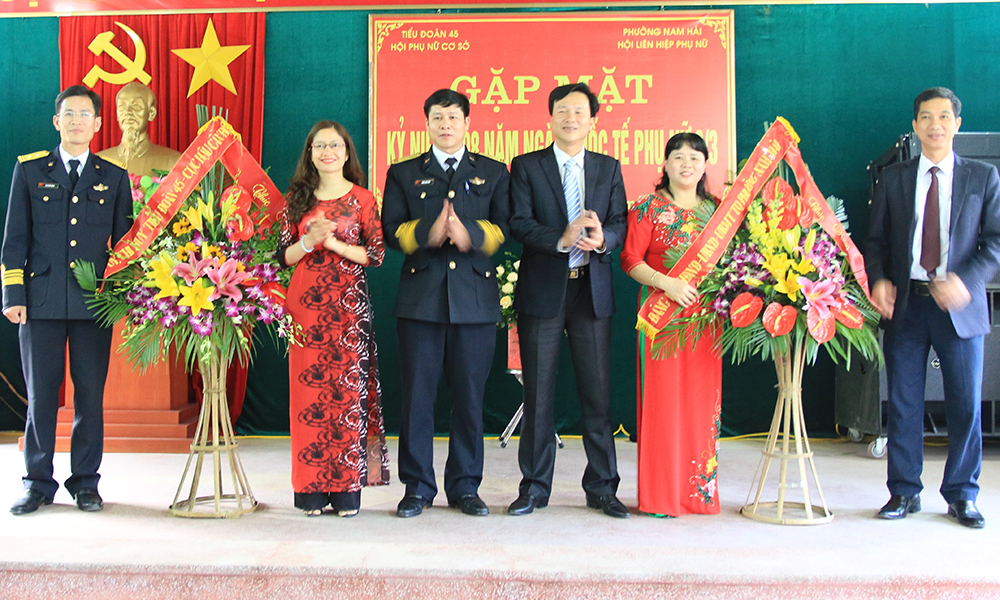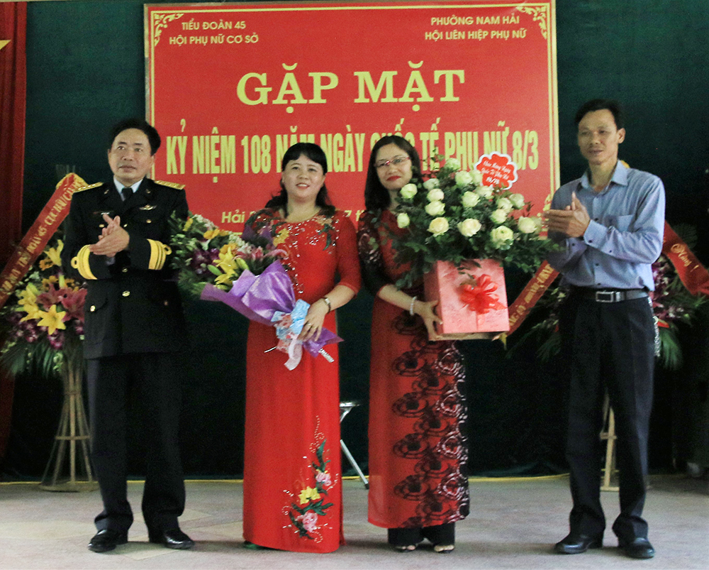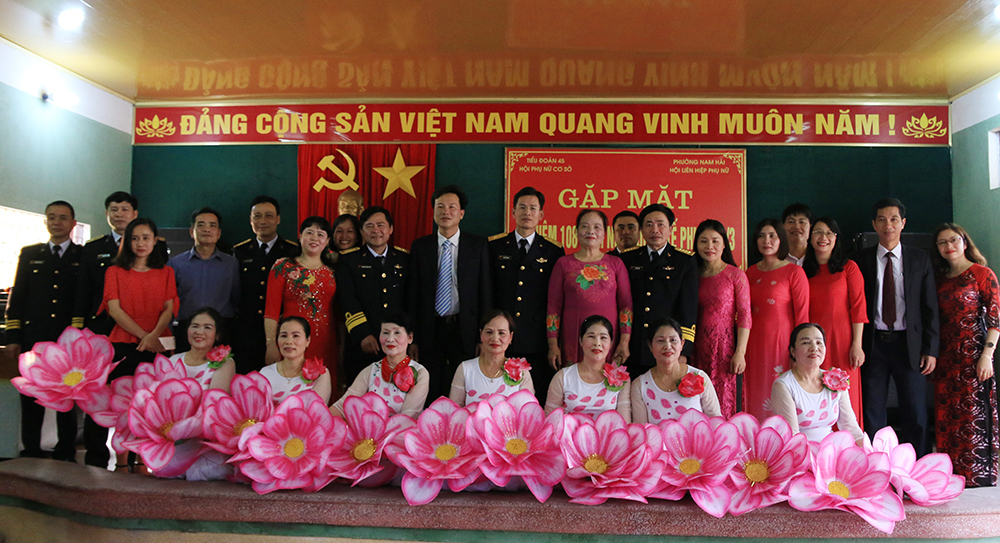 Chiều 7-3, Hội PNCS Tiểu đoàn 45, Cục Hậu cần Hải quân phối hợp với Hội LHPN phường Nam Hải (quận Hải An, TP. Hải Phòng) tổ chức buổi giao lưu, gặp gỡ nhân dịp kỷ niệm 108 năm Ngày Quốc tế phụ nữ 8-3 và 1978 năm khởi nghĩa Hai Bà Trưng. Đại diện lãnh đạo Phòng Chính trị, Cục Hậu cần Hải quân, phường Nam Hải đã tới dự.
