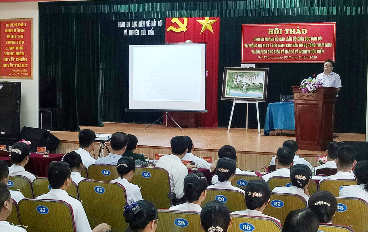 Chiều 5-6, tại Hải Phòng, Đoàn Đo đạc biên vẽ hải đồ và nghiên cứu biển, Bộ Tham mưu Hải quân phối hợp với Cục Đo đạc, bản đồ và thông tin địa lý Việt Nam; Cục bản đồ, Bộ Tổng Tham mưu tổ chức Hội thảo chuyên ngành đo đạc, bản đồ.