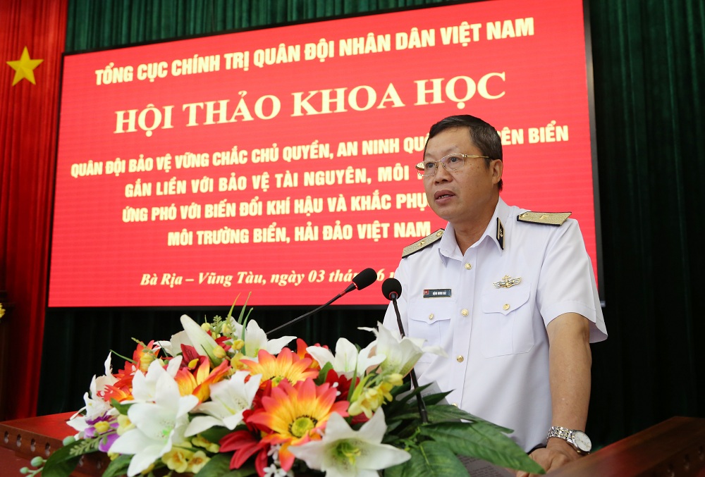 Sáng 3- 6, tại Bộ Tư lệnh Vùng 2 Hải quân (TP. Vũng Tàu) đã diễn ra Hội thảo khoa học với chủ đề: “Quân đội bảo vệ vững chắc chủ quyền, an ninh quốc gia trên biển gắn liền với bảo vệ tài nguyên, môi trường, ứng phó với biến đổi khí hậu và khắc phục sự cố môi trường biển, hải đảo Việt Nam” do Tổng cục Chính trị tổ chức. Thượng tướng Nguyễn Trọng Nghĩa, Ủy viên Trung ương Đảng, Ủy viên Quân ủy Trung ương, Phó Chủ nhiệm Tổng cục Chính trị chủ trì.