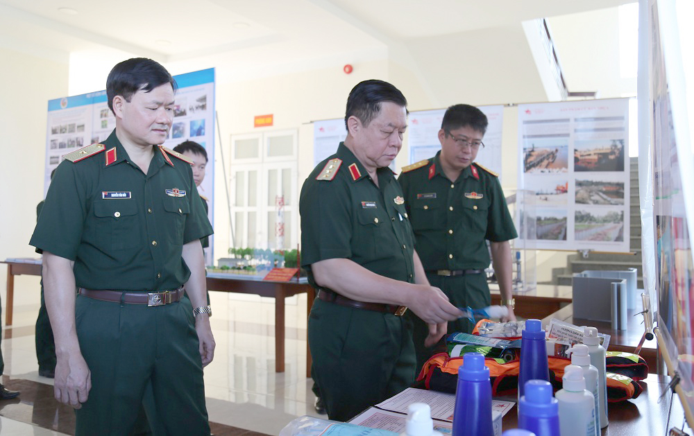 Thủ trưởng Tổng cục Chính trị và các đại biểu tham quan sản phẩm trưng bày tại hội thảo
