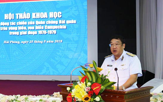 Sáng 25-5, tại Hải Phòng, Bộ Quốc phòng đã tổ chức Hội thảo khoa học “Hoạt động tác chiến của Quân chủng Hải quân trên vùng biển, ven biển Cam-pu-chia trong giai đoạn 1978-1979”. Thiếu tướng Phạm Lâm Hồng, Cục trưởng Cục Khoa học Quân sự, Bộ Quốc phòng chủ trì hội thảo.
