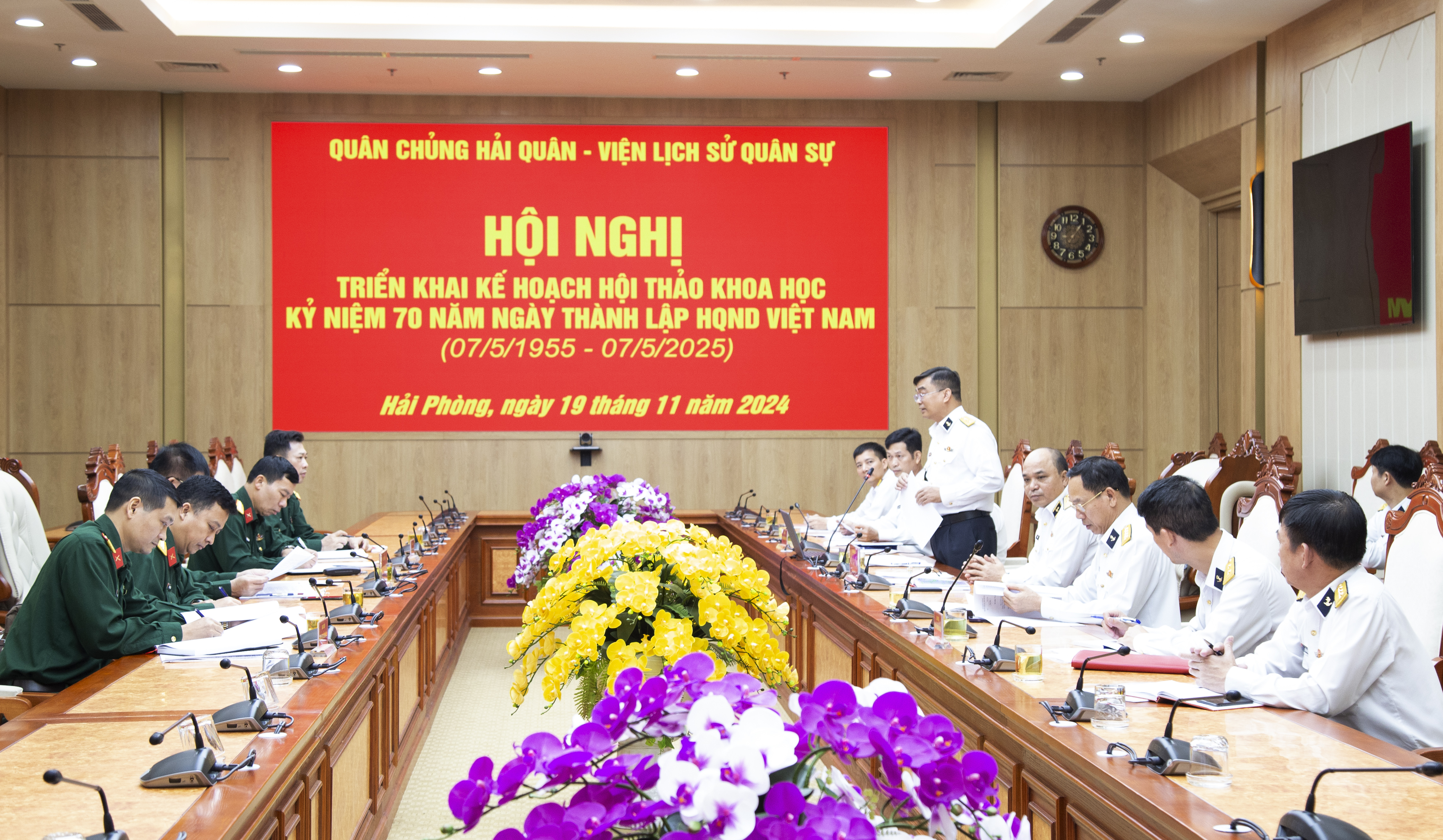 Sáng 19/11, tại Hải Phòng, Quân chủng Hải quân phối hợp với Viện Lịch sử quân sự tổ chức Hội nghị triển khai kế hoạch Hội thảo khoa học kỷ niệm 70 năm Ngày thành lập Hải quân Nhân dân Việt Nam (7/5/1955 - 7/5/2025). Chuẩn Đô đốc Đỗ Văn Yên, Phó Chính ủy Hải quân cùng Thiếu tướng, TS Nguyễn Hoàng Nhiên, Viện trưởng Viện Lịch sử quân sự đồng chủ trì.
