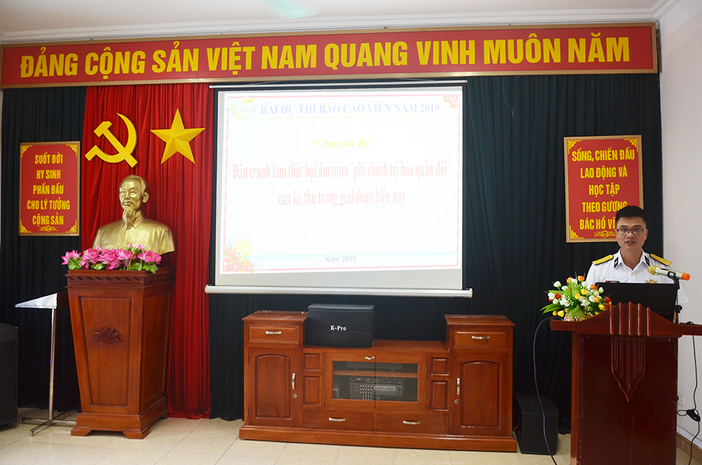 Ngày 8 và 9-7, tại TP. Hạ Long, tỉnh Quảng Ninh, Lữ đoàn 170, Vùng 1 Hải quân đã tổ chức Hội thi báo cáo viên giỏi năm 2019. Thượng tá Vũ Anh Tuấn, Chính ủy Lữ đoàn dự và chủ trì.