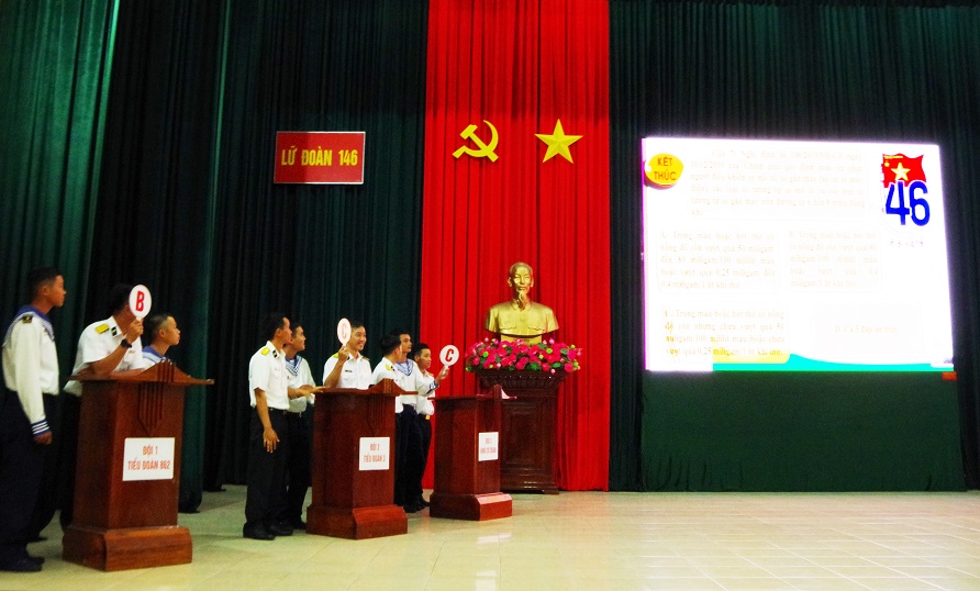 Tối 10/11, tại TP. Cam Ranh, tỉnh Khánh Hòa, Lữ đoàn 146, Vùng 4 Hải quân tổ chức Hội thi “Cán bộ, chiến sĩ Lữ đoàn 146 với pháp luật, kỷ luật và văn hóa giao thông”.