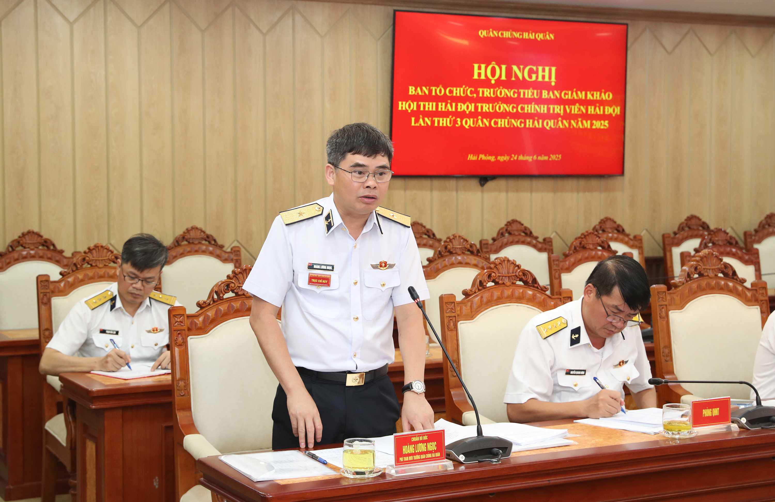 Chiều 24/6, tại Hải Phòng, Quân chủng Hải quân tổ chức Hội nghị Ban tổ chức Hội thi hải đội trưởng, chính trị viên hải đội lần thứ 3 Quân chủng Hải quân năm 2025. Chuẩn Đô đốc Nguyễn Văn Bách, Phó Tư lệnh, Tham mưu trưởng Hải quân chủ trì.