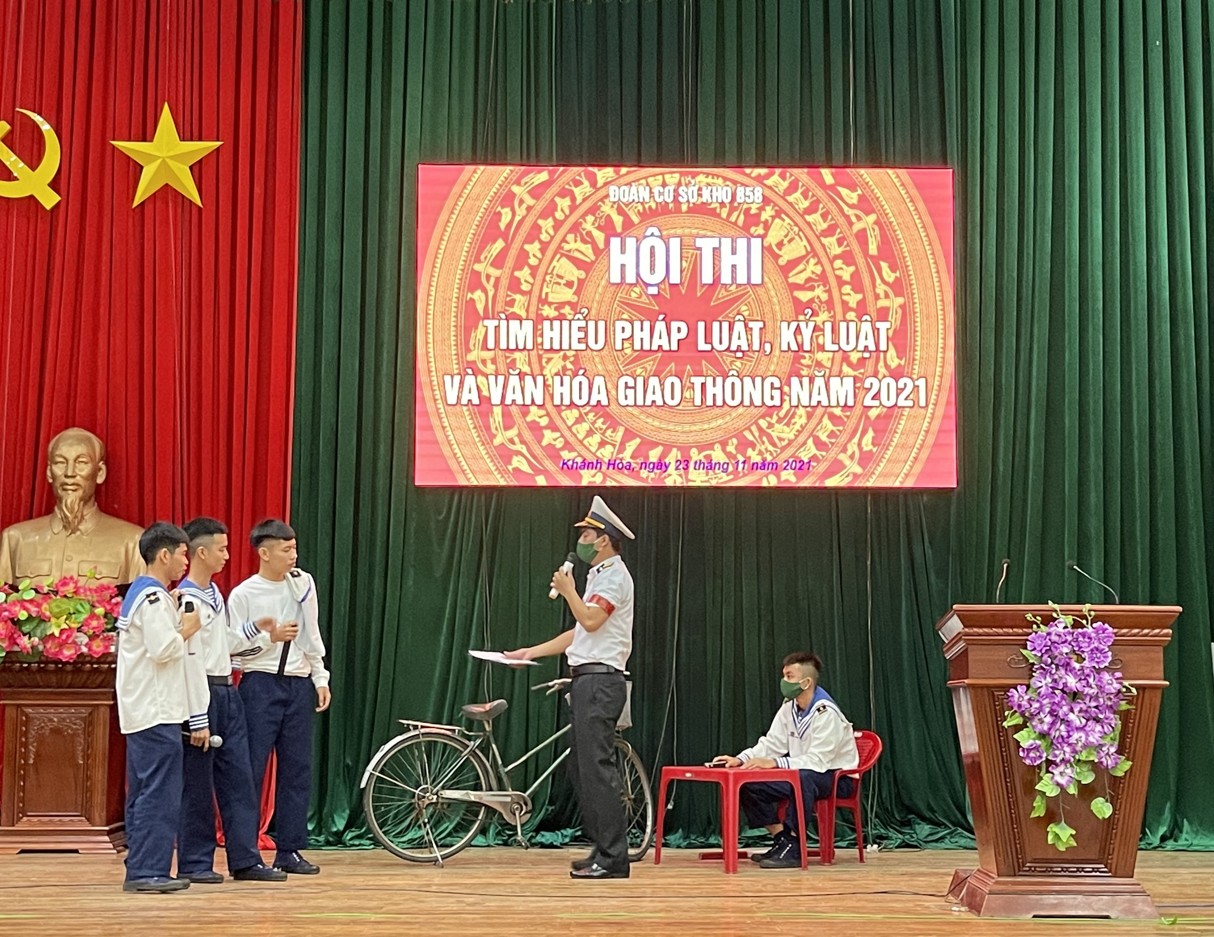 Tối 23/11, tại TP. Cam Ranh, tỉnh Khánh Hòa, Đoàn cơ sở Kho 858, Cục Kỹ thuật Hải quân tổ chức Hội thi tìm hiểu pháp luật, kỷ luật và văn hóa giao thông. Tham gia hội thi có 3 đội gồm: “Xung kích” của khối cơ quan; “An toàn” của khối chuyên môn và “Quyết thắng” của Chi đoàn Vệ binh - Bảo vệ.