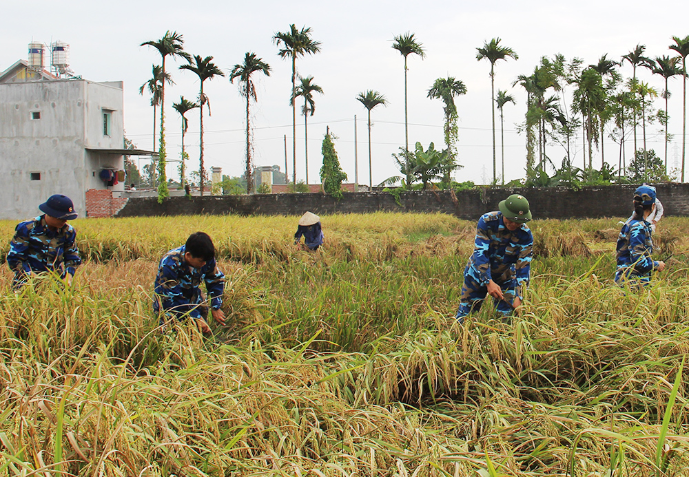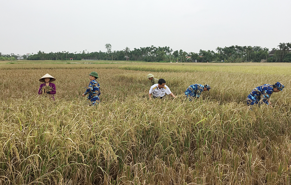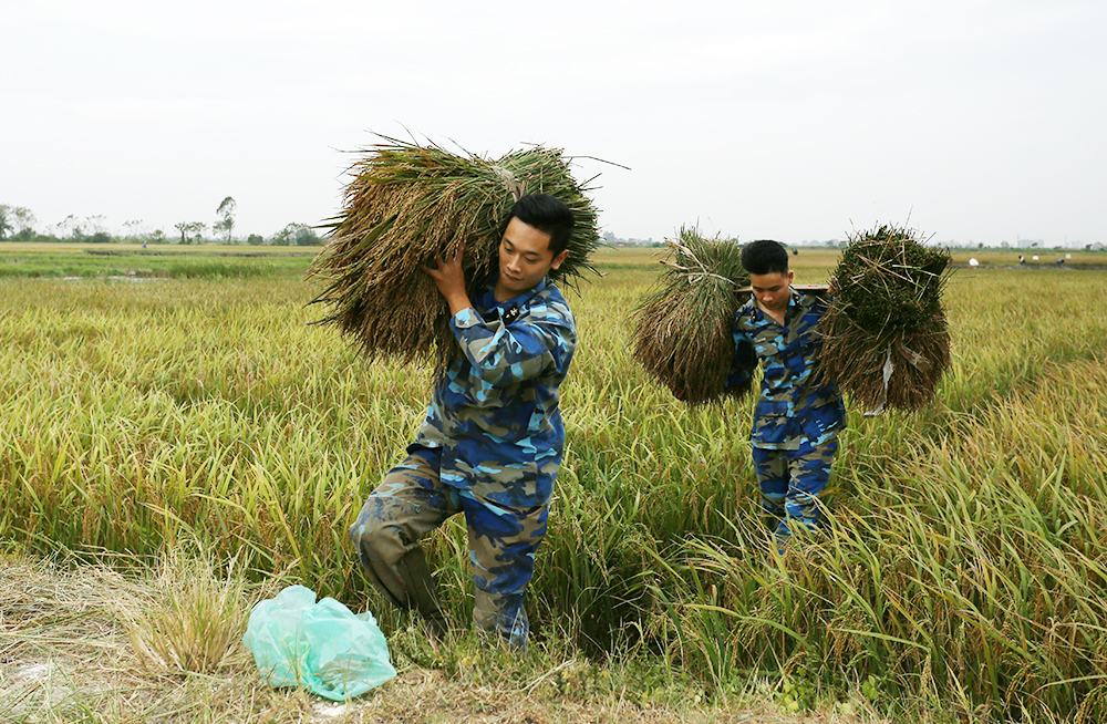 *Tại Quảng Ninh, Lữ đoàn 147, Vùng 1 Hải quân đã phối hợp với chính quyền địa phương và bà con nhân dân 6 xã, phường của thị xã Quảng Yên để thu hoạch gần 4.000 ha lúa. Tại các xã đảo Hà Nam, do đồng ruộng chiêm trũng nên việc thu hoạch và vận chuyển chủ yếu dựa vào sức người. Với phương châm “Xanh nhà hơn già đồng” cán bộ, chiến sĩ và nhân dân đã khẩn trương thu hoạch lúa và đưa về tận nhà các gia đình.