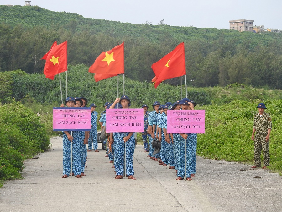 Cán bộ, chiến sĩ Lữ đoàn đã phối hợp với nhân dân và các đơn vị quân đội đóng quân trên đảo tiến hành tổng dọn vệ sinh, làm sạch hơn 8 km bờ biển, thu dọn gần 5 tấn rác thải.