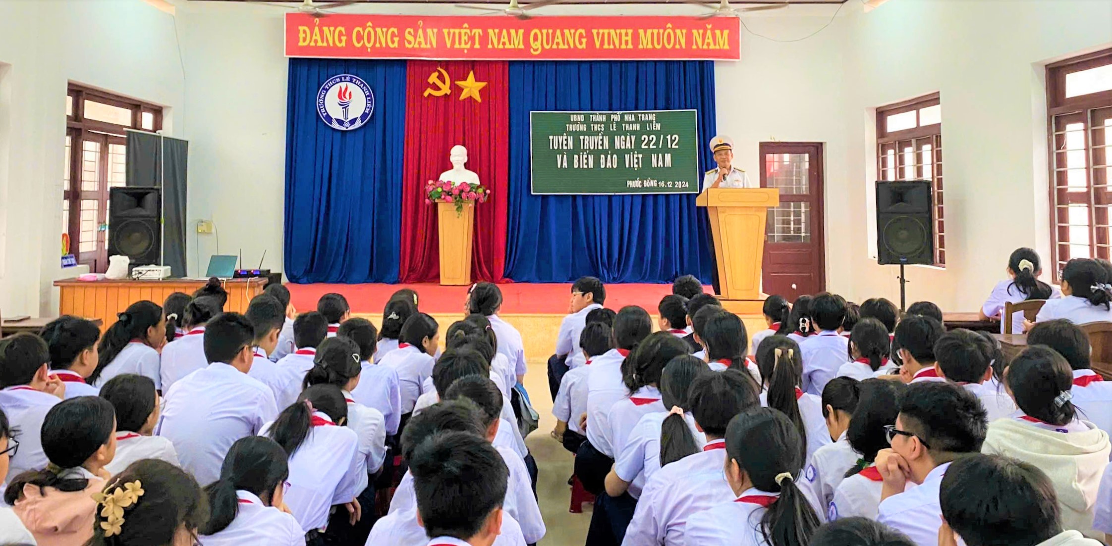 Sáng 16/12, tại TP. Nha Trang, tỉnh Khánh Hòa, Học viện Hải quân phối hợp với một số trường học trên địa bàn đóng quân tổ chức nói chuyện truyền thống nhân dịp kỷ niệm 80 năm Ngày thành lập Quân đội nhân dân Việt Nam và 35 năm Ngày hội quốc phòng toàn dân.
