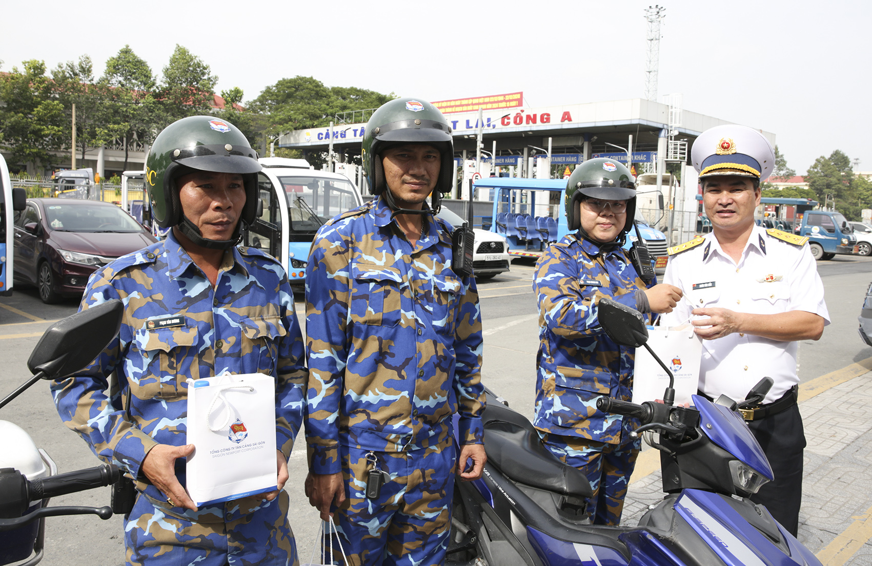 Trao quà tặng lực lượng Cảnh sát Giao thông TP. Hồ Chí Minh đang điều tiết giao thông đường vào Cảng Tân cảng Cát Lái
