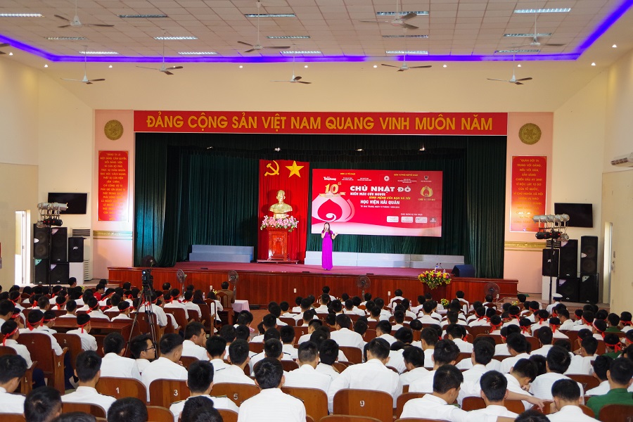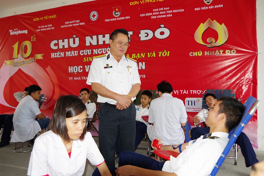 Đây là năm thứ hai Học viện Hải quân phối hợp với Báo Tiền phong tổ chức thành công ngày hội thanh niên hiến máu tình nguyện “Chủ nhật đỏ” nhằm góp phần cung cấp lượng máu cần thiết cho các bệnh viện.