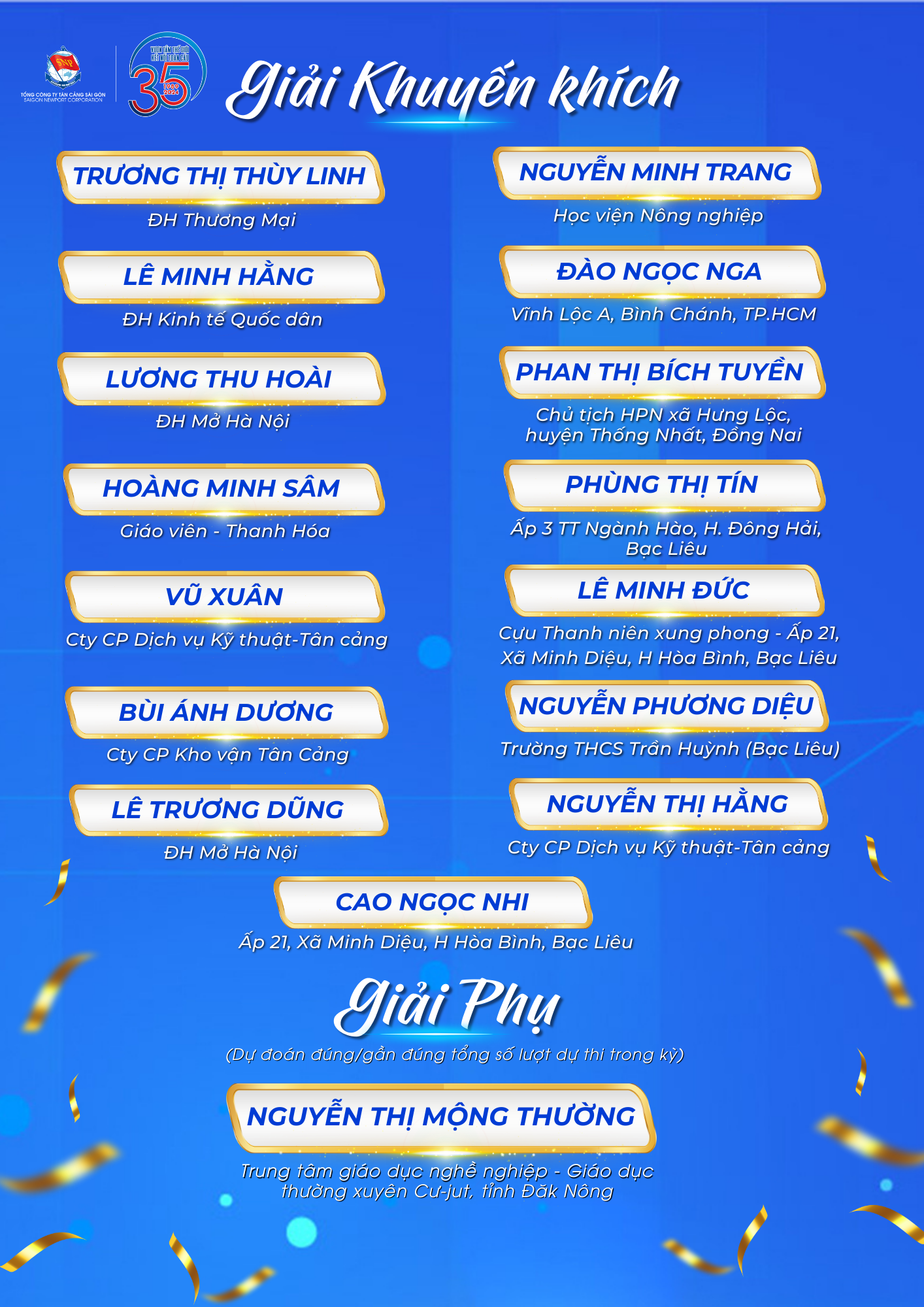 Cuộc thi tìm hiểu "Tân Cảng Sài Gòn 35 năm vươn tầm thế giới - kết nối toàn cầu" (15/3/1989 - 15/3/2024) do Tổng công ty Tân cảng Sài Gòn tổ chức có sức lan tỏa và thu hút đông đảo cán bộ, nhân dân, đồng bào, chiến sĩ cả nước và đối tác, khách hàng của Tổng công ty tham gia.