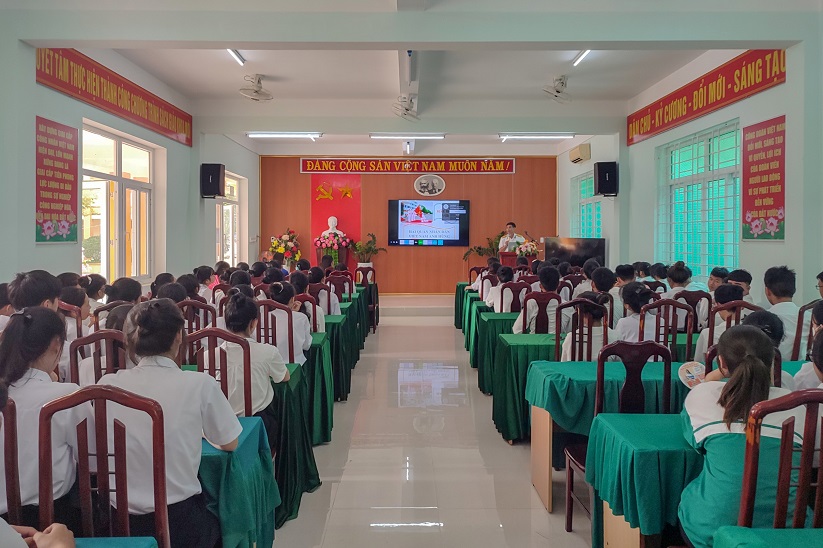 Cán bộ, giáo viên, học sinh các trường học được báo cáo viên của Trung tâm thông tin về vị trí, vai trò, tầm quan trọng của biển, đảo Việt Nam trong sự nghiệp xây dựng và bảo vệ Tổ quốc; quan điểm, chủ trương của Đảng, chính sách của Nhà nước trong giải quyết các vấn đề trên Biển Đông; vai trò và kết quả thực hiện nhiệm vụ bảo vệ chủ quyền biển, đảo của Quân chủng Hải quân.