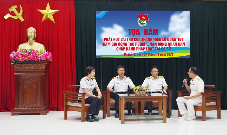 Tối 7/11, tại TP. Đà Nẵng, Đoàn cơ sở Lữ đoàn 161, Vùng 3 Hải quân tổ chức tọa đàm thanh niên với chủ đề “Phát huy vai trò của thanh niên Hải quân tham gia công tác phổ biến, giáo dục pháp luật, vận động nhân dân chấp hành pháp luật tại cơ sở”.