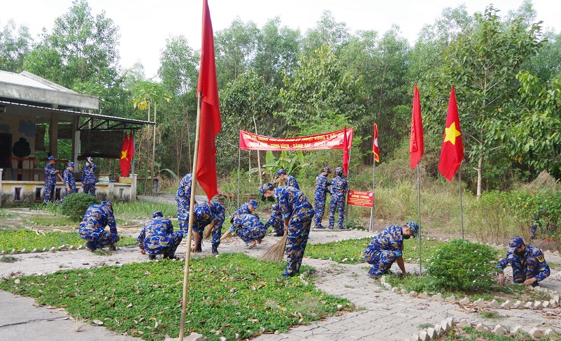 Cán bộ, đoàn viên thanh niên lao động làm đẹp doanh trại