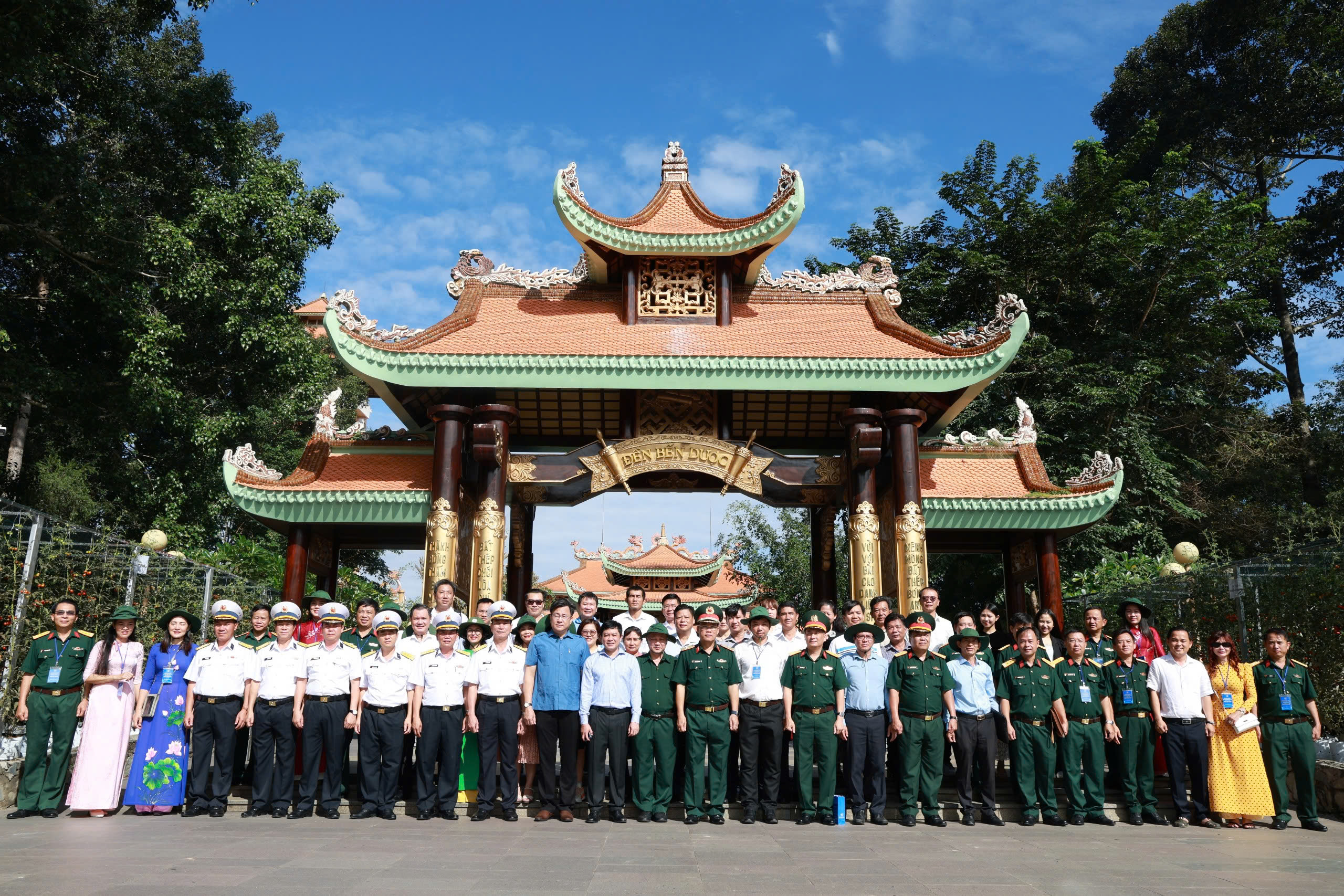 Các đại biểu chụp ảnh lưu niệm tại Đền Bến Dược