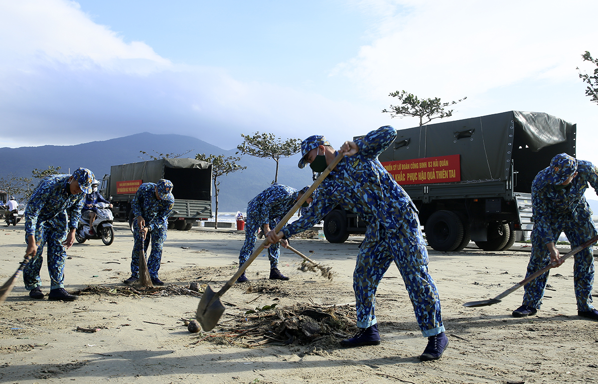 Trung tá Lê Đình Hà, Phó Tham mưu trưởng Lữ đoàn 83 cho biết: Ngay sau khi cơn bão qua, đơn vị đã phối hợp với địa phương, cơ động lực lượng khắc phục hậu quả, dọn vệ sinh môi trường bờ biển và các trục đường, bảo đảm giao thông thông suốt.