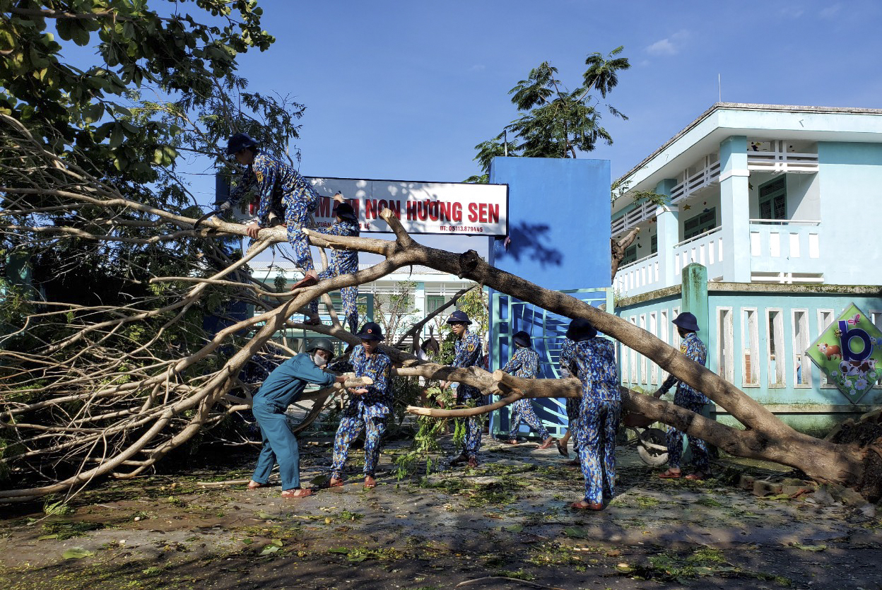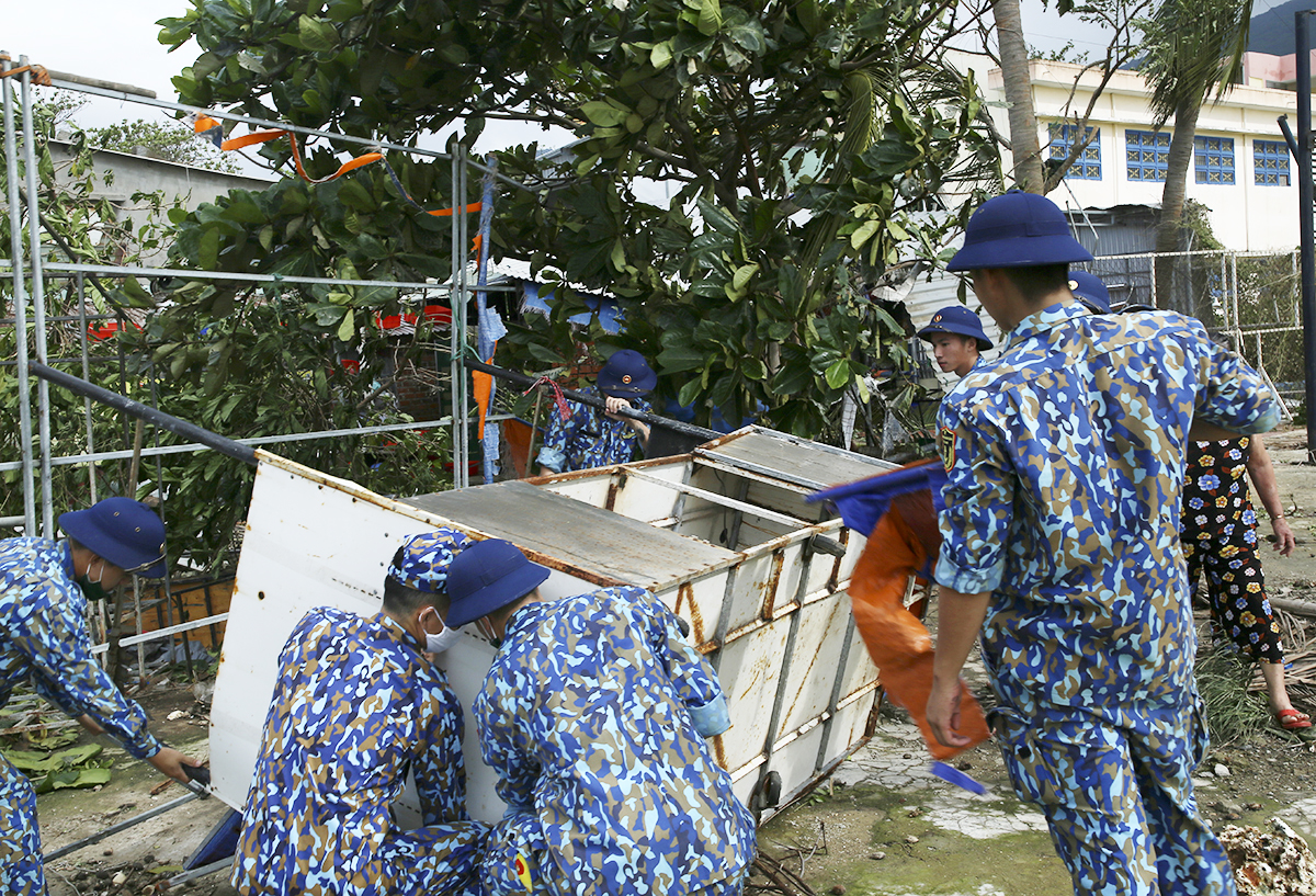 * Lữ đoàn 680, Vùng 3 cử hơn 30 cán bộ, chiến sĩ cơ động về phường Hòa Xuân, quận Cẩm Lệ, TP. Đà Nẵng thu dọn cây gẫy đổ, giúp 3 trường mầm non vệ sinh, sắp đặt đồ đạc để đón học sinh đến trường; giúp 3 hộ dân lợp lại mái tôn do bão tốc mái.