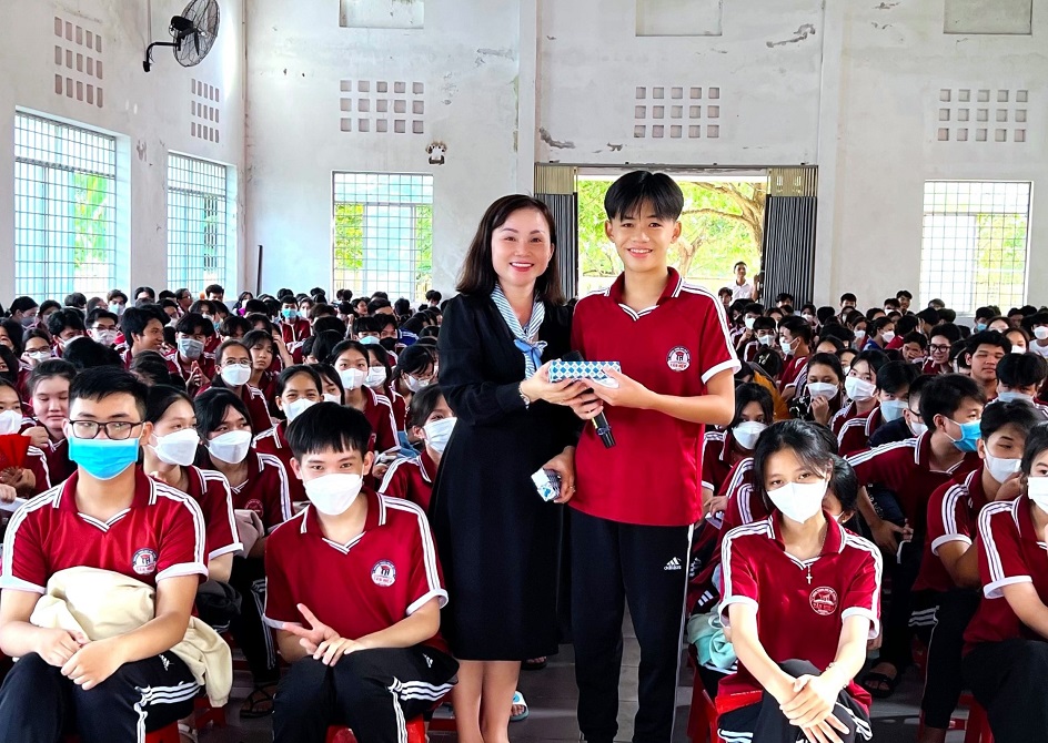 Quang cảnh buổi thông tin tại Trường THPT Giồng Riềng