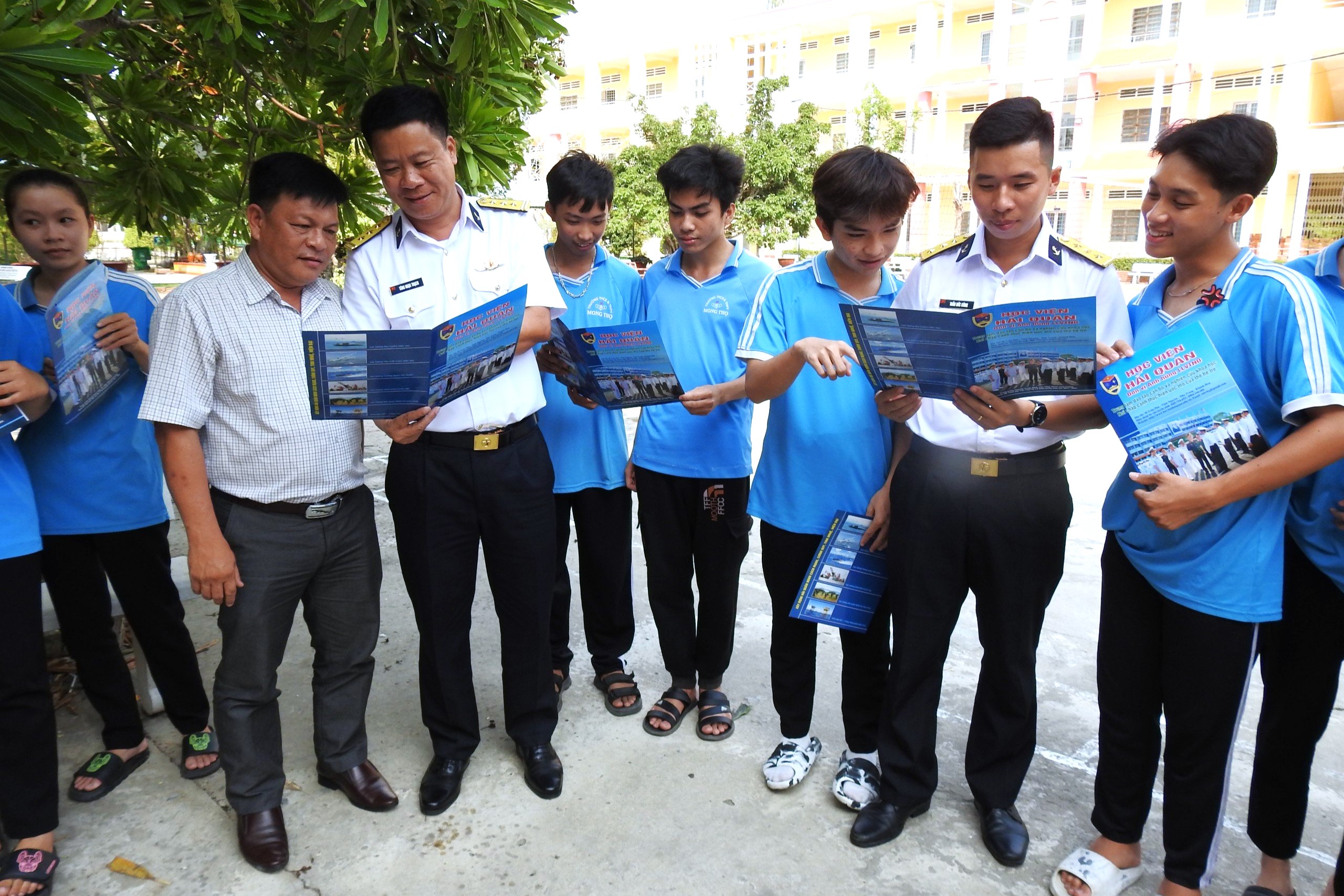 Các em học sinh còn được tư vấn, cung cấp thêm thông tin về các chuyên ngành đào tạo, điều kiện, quy trình, thủ tục đăng ký dự tuyển vào Học viện Hải quân; những chính sách thu hút nguồn nhân lực chất lượng cao xây dựng Quân chủng Hải quân cách mạng, chính quy, tinh nhuệ, hiện đại…