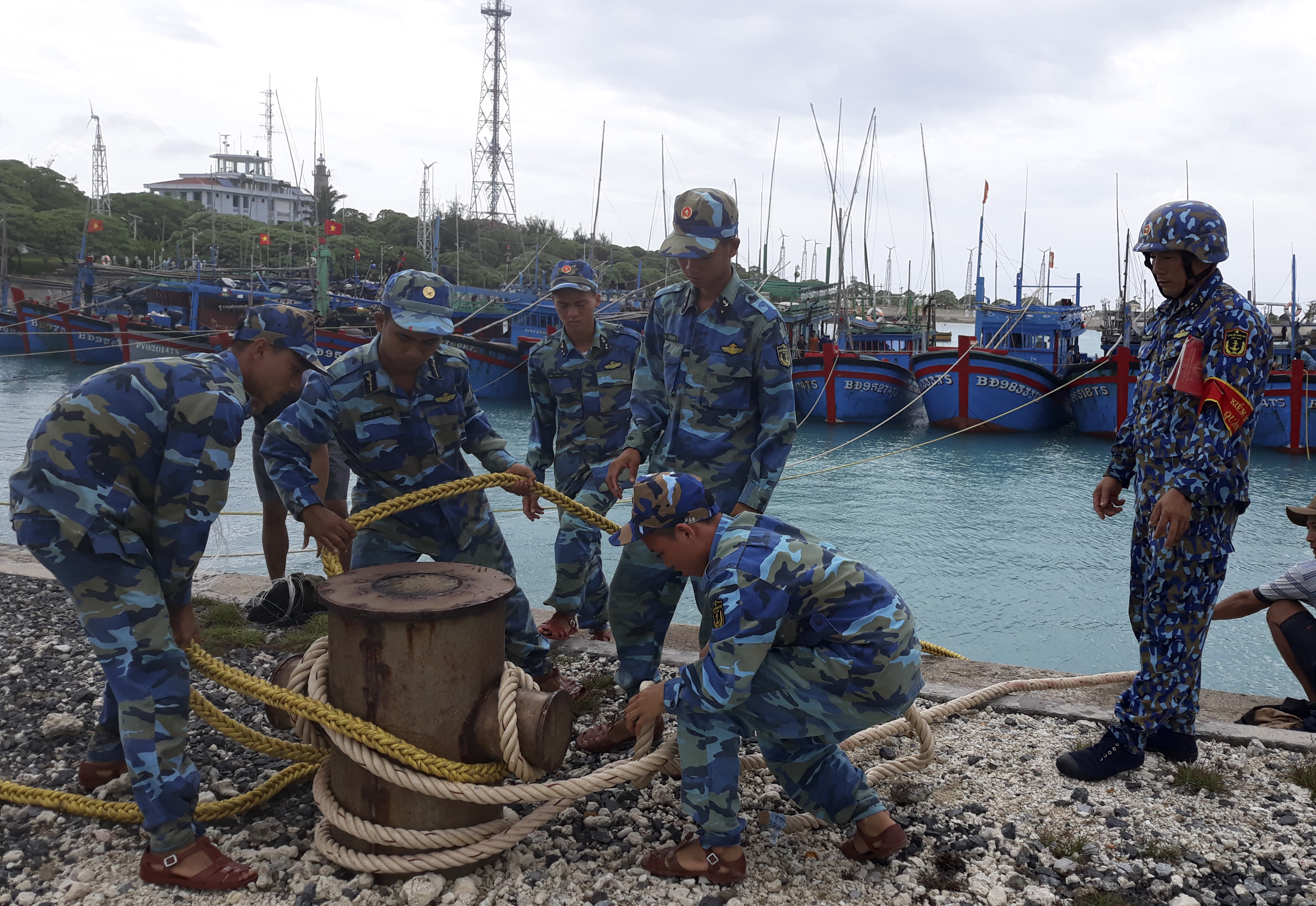 Tổ cơ động của đảo hướng dẫn tàu cá đi đúng luồng vào âu tàu. Khi neo đậu, cán bộ, chiến sĩ hướng dẫn cách chằng buộc chắc chắn, tránh va đập khi có thời tiết xấu. Tổ tuyên truyền phát tờ rơi về những điều ngư dân cần biết khi khai thác ở vùng biển xa bờ; khai thác hải sản bền vững. Chỉ huy đảo duy trì tốt công tác an toàn, an ninh tại khu neo. Trường hợp thời tiết xấu, nhất là ấp thấp mạnh thành bão, đảo chuẩn bị sẵn phương án di rời ngư dân lên khu an toàn. Những tàu cá có nhu cầu nước ngọt sinh hoạt đều được đảo đáp ứng.