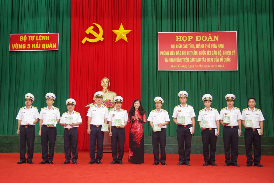 Ngày 6-1, tại huyện đảo Phú Quốc, tỉnh Kiên Giang, Bộ Tư lệnh Vùng 5 Hải quân tổ chức họp đoàn đại biểu các tỉnh, thành phố phía Nam; các doanh nghiệp, phóng viên báo đài Trung ương và địa phương đi thăm, chúc Tết, tặng quà cán bộ, chiến sĩ và nhân dân trên các đảo thuộc vùng biển Tây Nam của Tổ quốc nhân dịp Tết Kỷ Hợi 2019.
