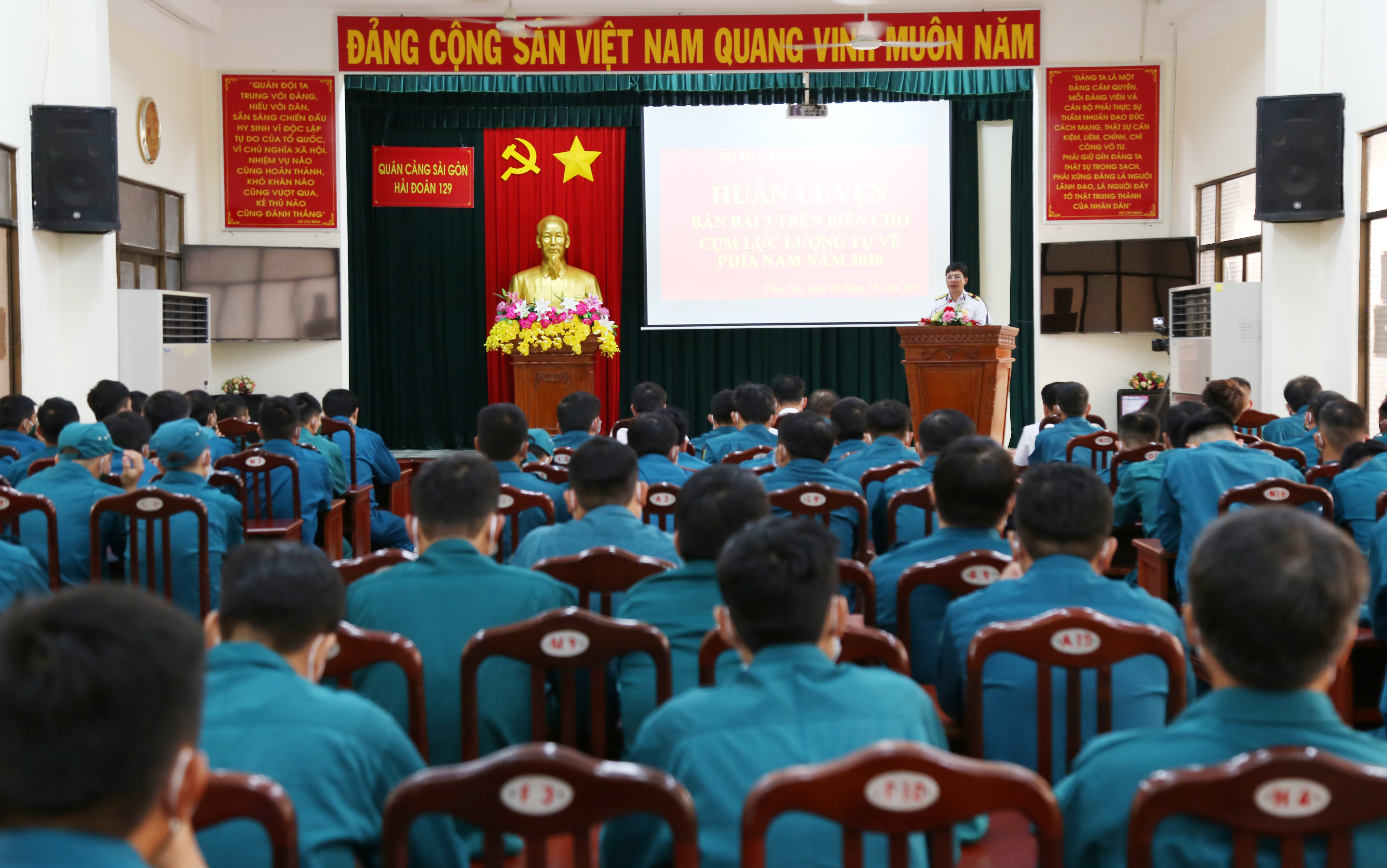 Sáng 5-10, tại Vũng Tàu, Bộ Tham mưu Hải quân tổ chức huấn luyện bắn đạn thật súng tiểu liên AK bài 3 trên biển cho các đơn vị tự vệ biển phía Nam năm 2020.