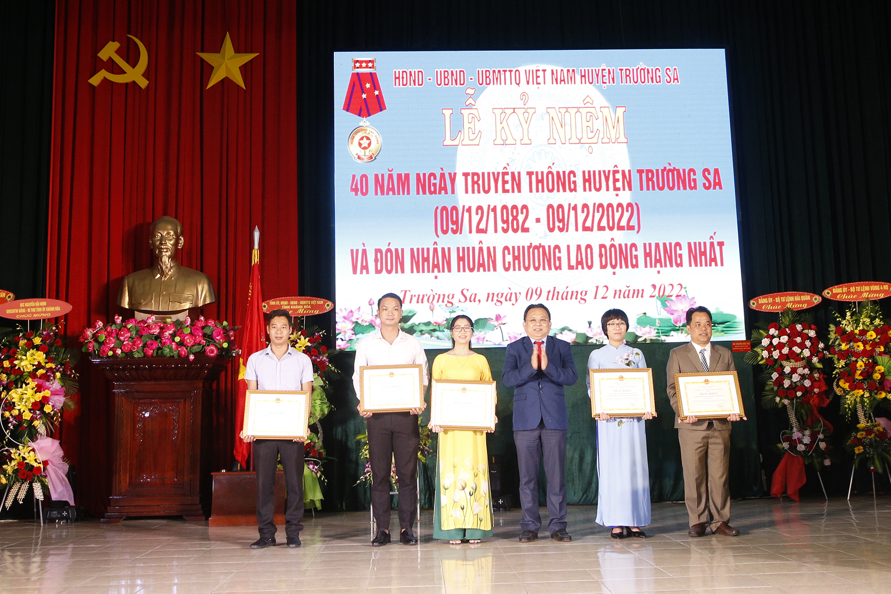 Nhân dịp kỷ niệm 40 năm Ngày truyền thống, quân và dân huyện Trường Sa vinh dự được Chủ tịch nước tặng thưởng Huân chương Lao động hạng Nhất; Chủ tịch UBND tỉnh Khánh Hòa tặng Bằng khen cho 5 tập thể, 8 cá nhân của huyện vì đã có thành tích xuất sắc trong xây dựng và phát triển huyện Trường Sa.