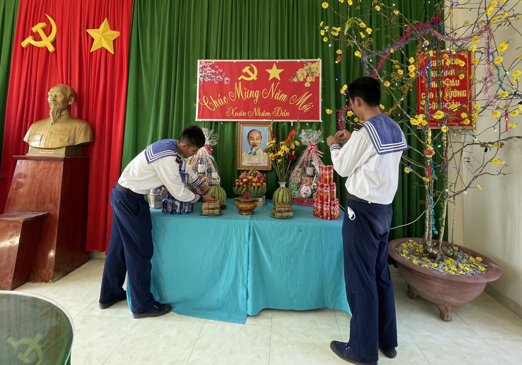 Cán bộ, chiến sĩ trang trí phòng đón Xuân