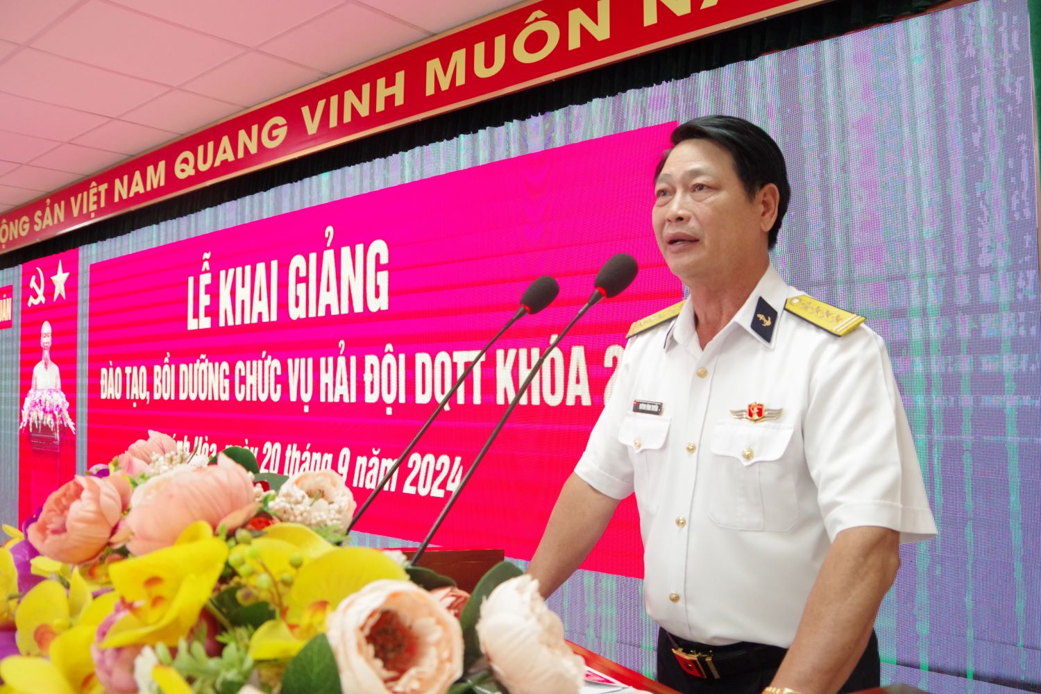 Chiều 20/9, tại TP. Nha Trang, tỉnh Khánh Hòa, Học viện Hải quân tổ chức khai giảng đào tạo, bồi dưỡng cán bộ hải đội dân quân thường trực năm 2024. Đại tá Huỳnh Vĩnh Tuyến, Phó Giám đốc Học viện dự và chỉ đạo.