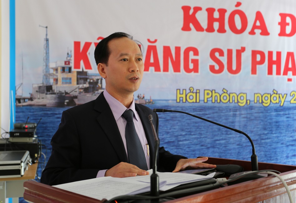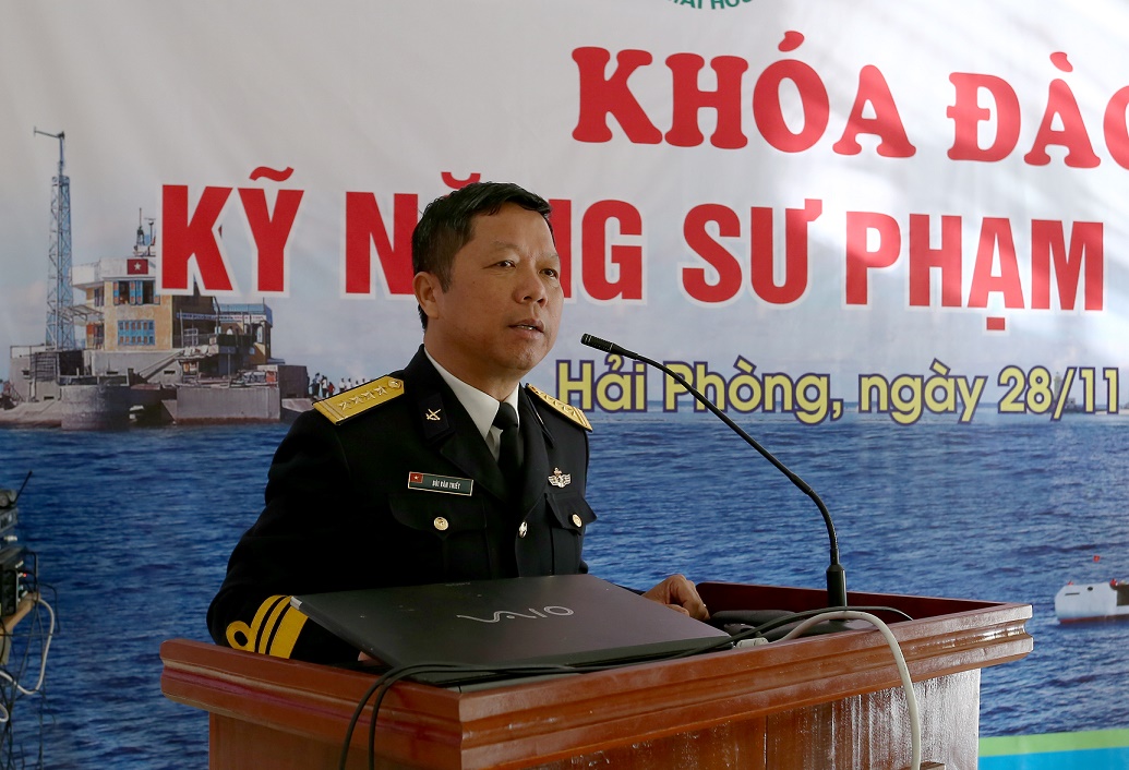 Đại tá Bùi Văn Thiết, Chủ nhiệm Hậu cần Hải quân phát biểu khai mạc khóa đào tạo