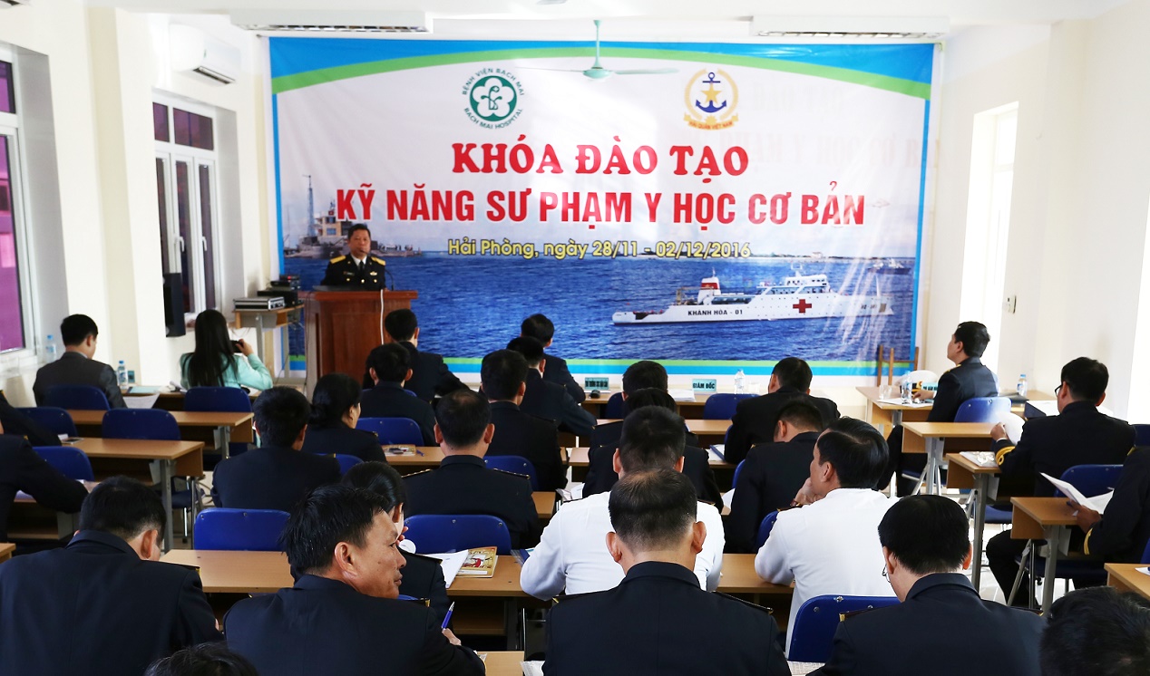 Ngày 28-11, tại Viện Y học Hải quân (Hải Phòng), Cục Hậu cần Hải quân phối hợp với Bệnh viện Bạch Mai tổ chức khai mạc khóa đào tạo “Kỹ năng sư phạm y học cơ bản ” cho 40 cán bộ, nhân viên quân y của các đơn vị thuộc Quân chủng Hải quân.