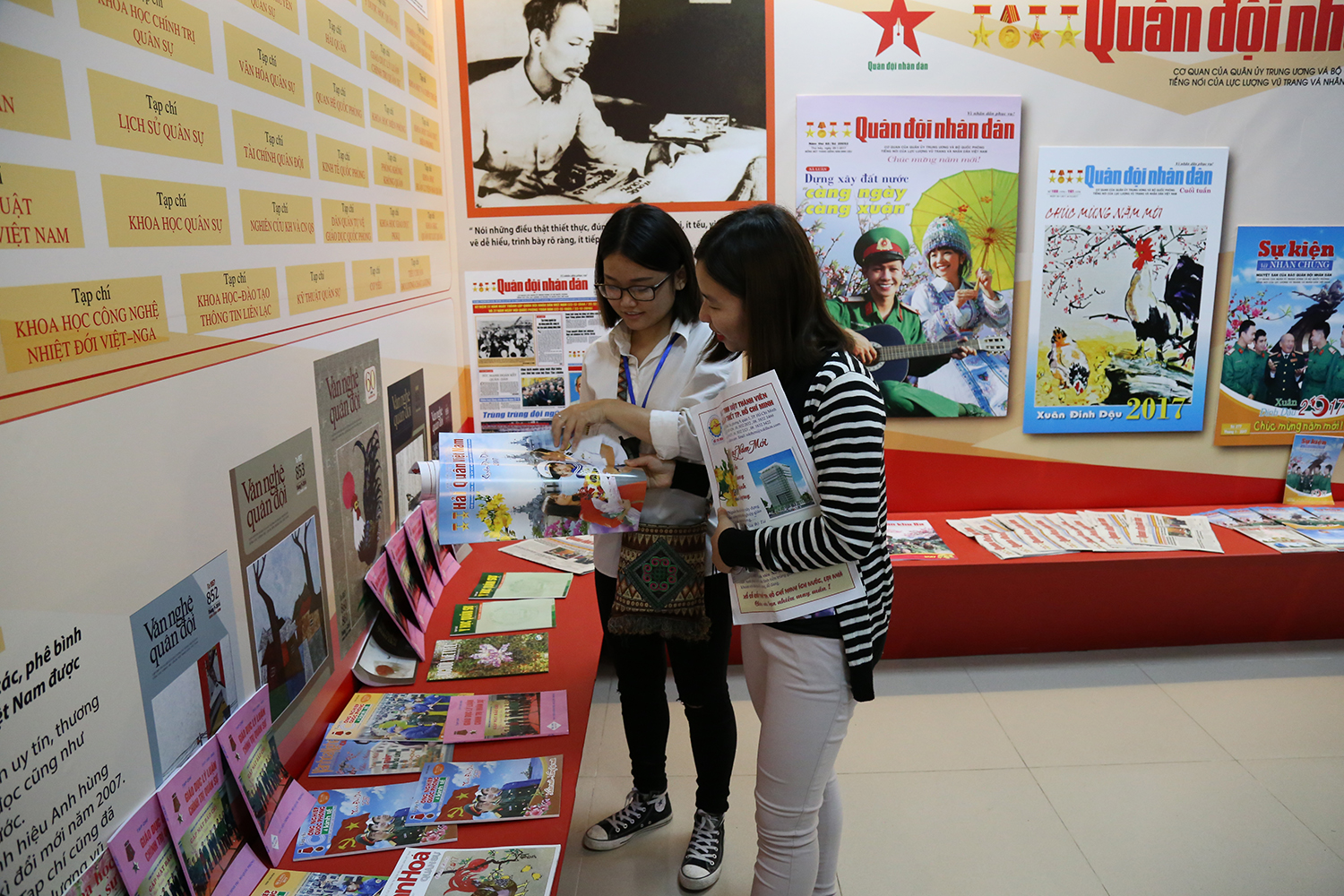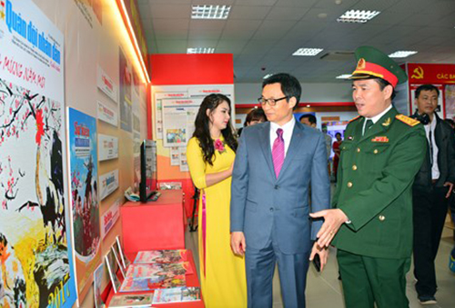 Phó Thủ tướng Vũ Đức Đam tham quan gian trưng bày Báo chí Quân đội nhân dân