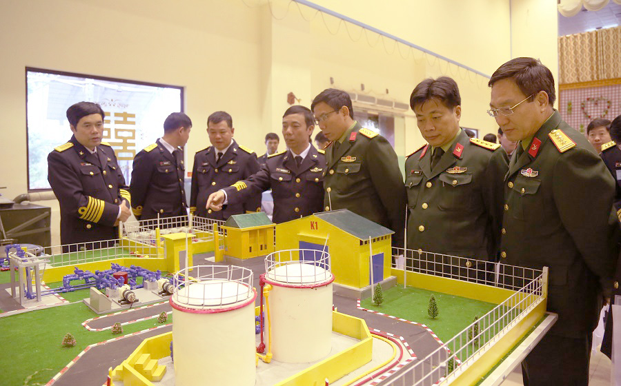 Các đại biểu tham quan mô hình tiếp nhận cấp phát xăng dầu của Căn cứ 696, Vùng 2