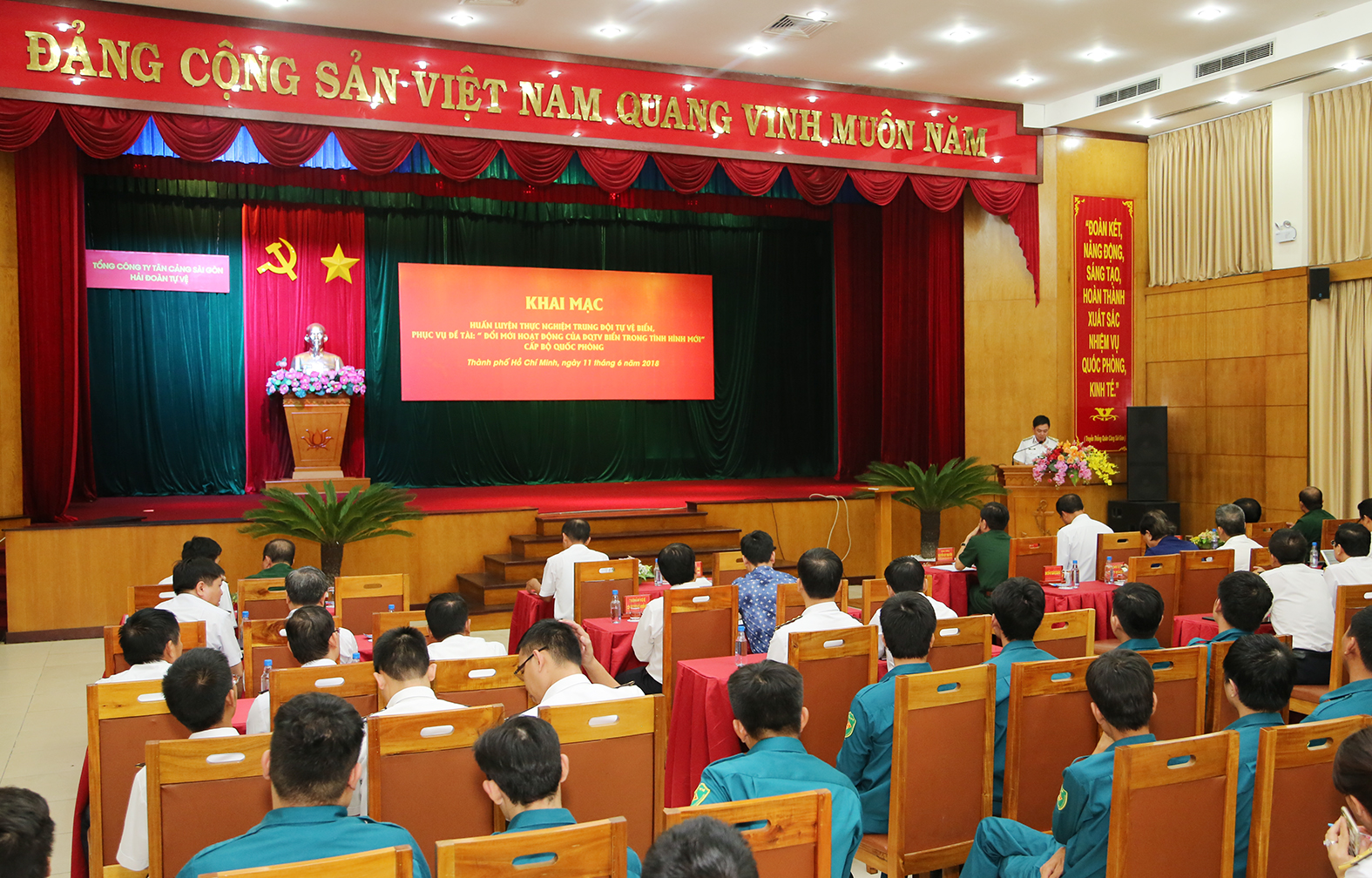 Chiều 11-6, tại TP. Hồ Chí Minh, Tổng Công ty Tân cảng Sài Gòn (TCT TCSG) tổ chức khai mạc huấn luyện thực nghiệm trung đội tự vệ biển, phục vụ đề tài: “Đổi mới hoạt động của dân quân tự vệ biển trong tình hình mới” cấp Bộ Quốc phòng.
