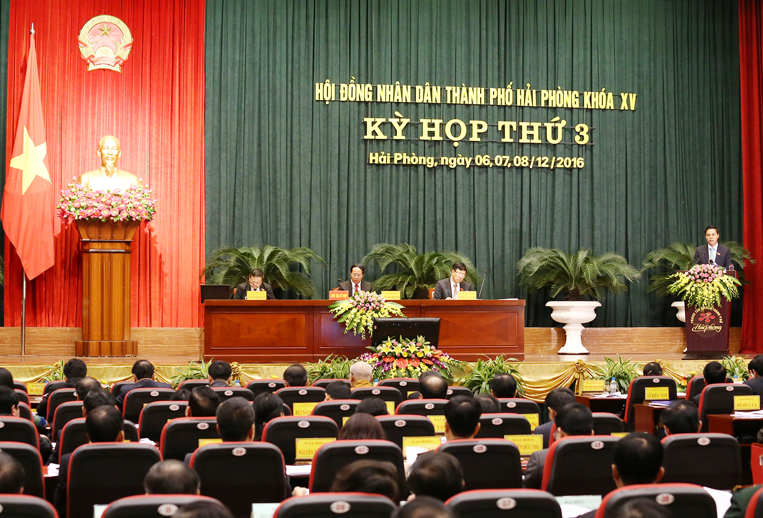 Sáng 6-12, tại Trung tâm Hội nghị thành phố Hải Phòng đã diễn ra Kỳ họp thứ 3 Hội đồng nhân dân (HĐND) TP. Hải Phòng, khóa XV. Tham dự khai mạc kỳ họp có các đồng chí: Lê Văn Thành, Ủy viên Trung ương Đảng, Bí thư Thành ủy, Chủ tịch HĐND TP. Hải Phòng; Nguyễn Thị Nghĩa, Phó Bí thư thường trực Thành ủy, Trưởng đoàn đại biểu Quốc hội Hải Phòng; Nguyễn Văn Tùng, Chủ tịch UBND thành phố Hải Phòng.
