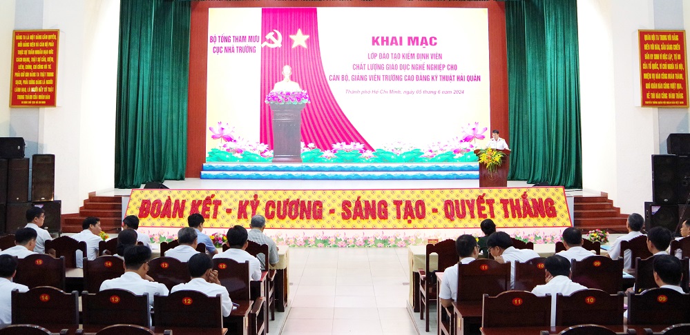 Sáng 5/6, tại TP. Hồ Chí Minh, Trường Cao đẳng Kỹ thuật Hải quân phối hợp với Cục Nhà trường, Bộ Tổng Tham mưu khai mạc Lớp bồi dưỡng kiểm định viên chất lượng giáo dục nghề nghiệp cho cán bộ, giảng viên Trường Cao đẳng Kỹ thuật Hải quân năm 2024.